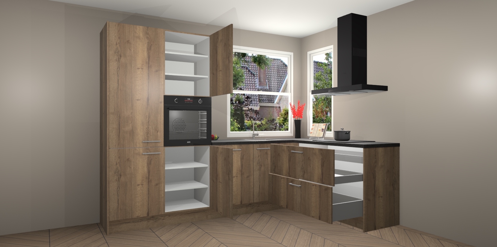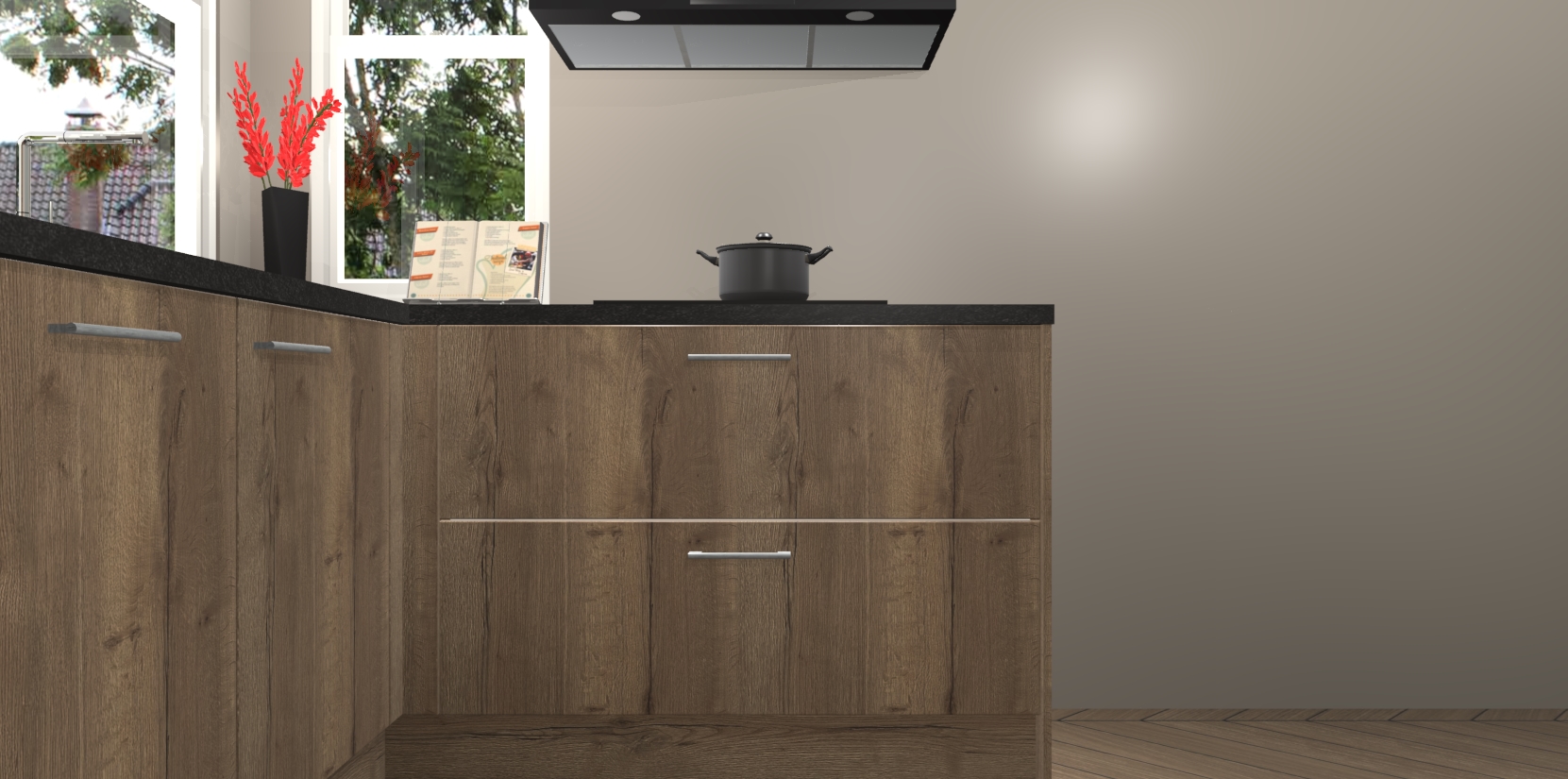 Het is tijd om halsoverkop verliefd te worden op uw droomkeuken, en de Chocolade Eiken keuken Kotor is precies wat u nodig heeft! Met een moderne, tijdloze constructie en een mix van prachtig design zal deze luxe hoekkeuken zeker opvallen. Maar laat de schoonheid u niet afleiden van de indrukwekkende functies - want onder dit alles schuilt een onovertroffen hoeveelheid lekkers!