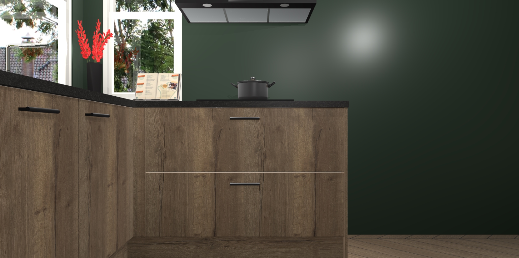 Het is tijd om halsoverkop verliefd te worden op uw droomkeuken, en de Chocolade Eiken keuken Kotor is precies wat u nodig heeft! Met een moderne, tijdloze constructie en een mix van prachtig design zal deze luxe hoekkeuken zeker opvallen. Maar laat de schoonheid u niet afleiden van de indrukwekkende functies - want onder dit alles schuilt een onovertroffen hoeveelheid lekkers!