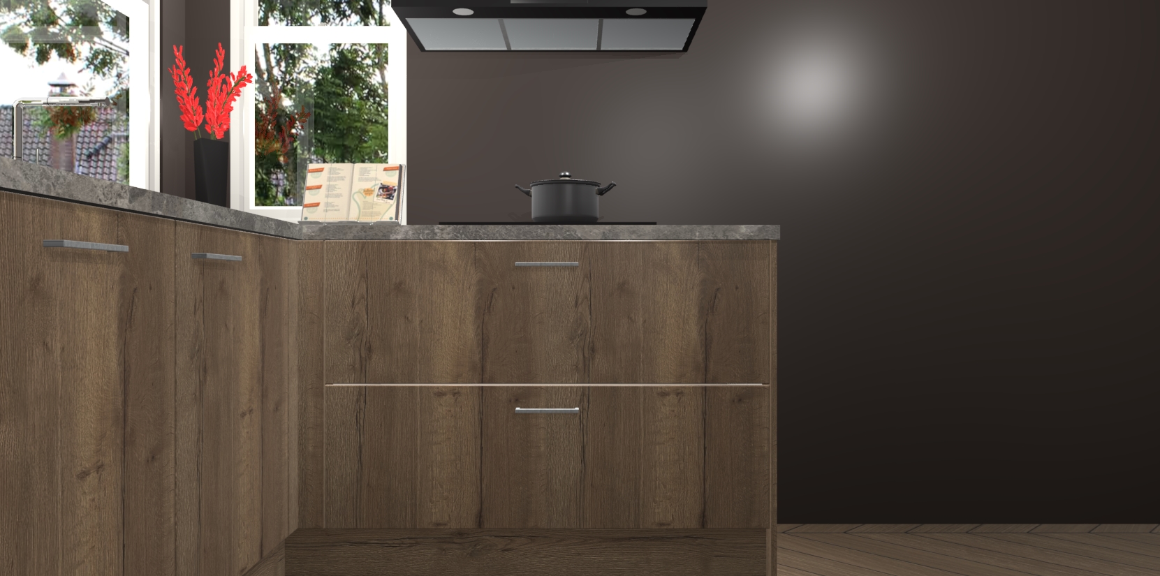 Het is tijd om halsoverkop verliefd te worden op uw droomkeuken, en de Chocolade Eiken keuken Kotor is precies wat u nodig heeft! Met een moderne, tijdloze constructie en een mix van prachtig design zal deze luxe hoekkeuken zeker opvallen. Maar laat de schoonheid u niet afleiden van de indrukwekkende functies - want onder dit alles schuilt een onovertroffen hoeveelheid lekkers!