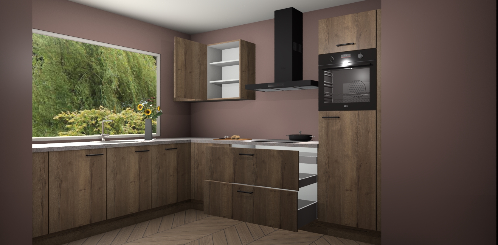 Bent u op zoek naar een onberispelijk keukenontwerp dat Duitse precisie en uitmuntende architectuur ademt? Zoek niet verder - de chocolate-eiken-keuken Limonos biedt de perfecte moderne mix van stijl en functionaliteit.
