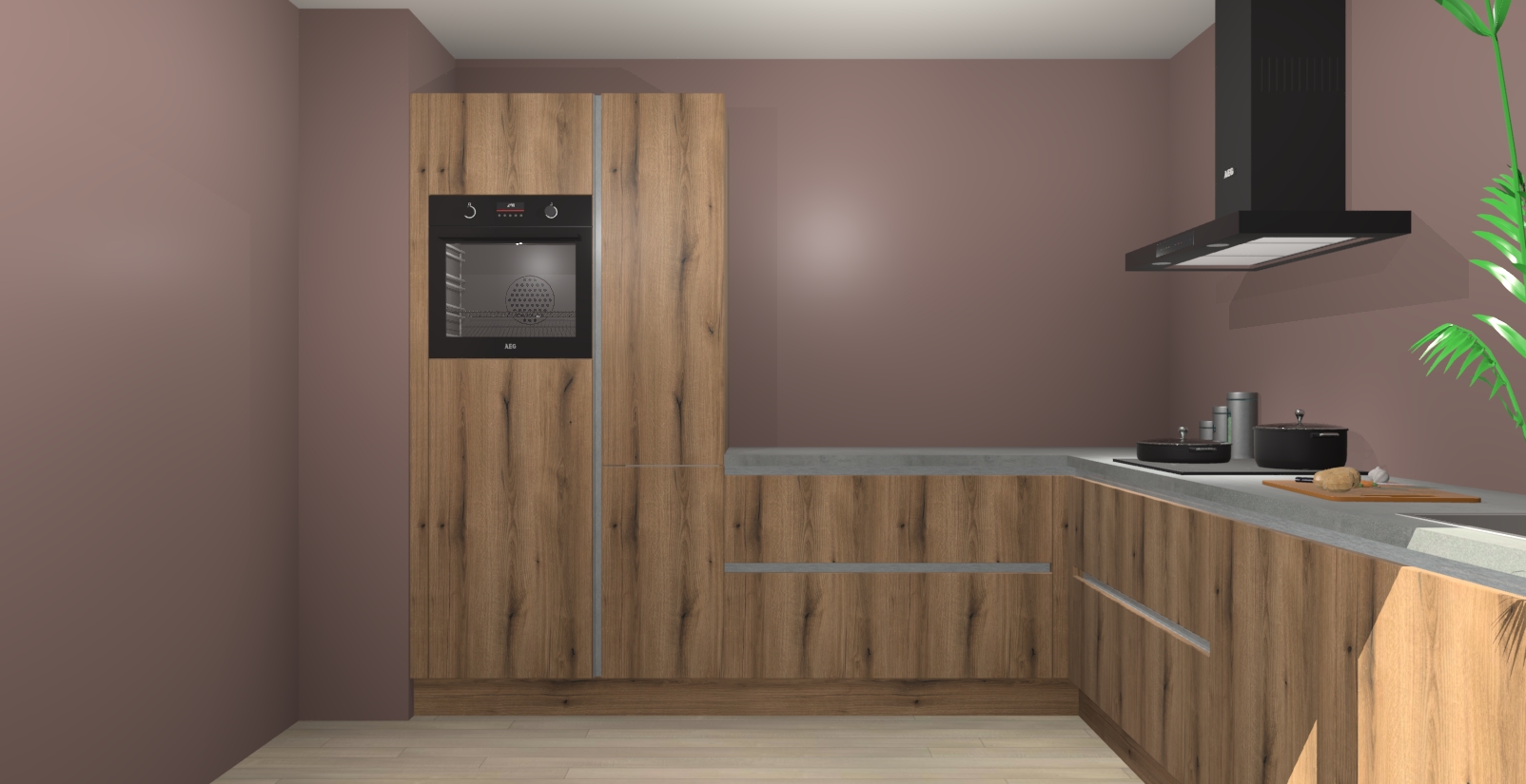Laat u verrassen door de nieuwste en meest innovatieve keuken van dit moment: De Goud Eiken greeploze keuken Antibes. Deze chique keuken straalt een stijlvolle sfeer uit die zeker bewondering zal oogsten bij uw gasten. Als u op zoek bent naar voldoende opbergruimte voor al uw keukengadgets en -gerei, dan is dit de perfecte oplossing. Met ingebouwde apparatuur zoals een oven, inductiekookplaat, afzuigkap, vaatwasser en koelkast! U krijgt niet alleen veel opbergruimte, maar ook een betrouwbaar soft close-deursysteem dat ervoor zorgt dat er nooit meer kastdeuren dichtslaan!
