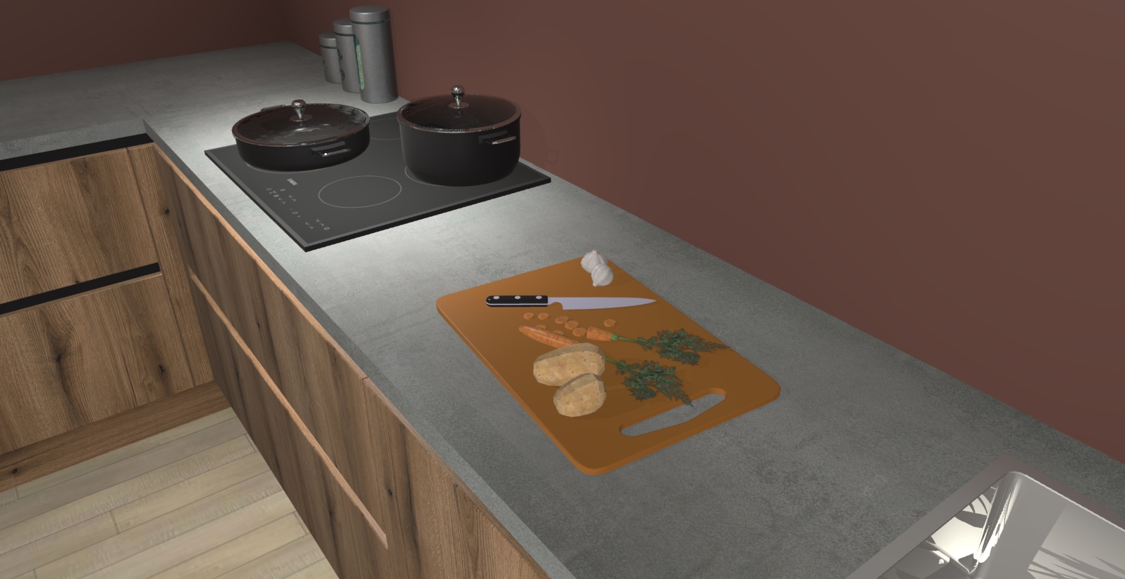 Inclusief plinten, stelpoten en werkblad