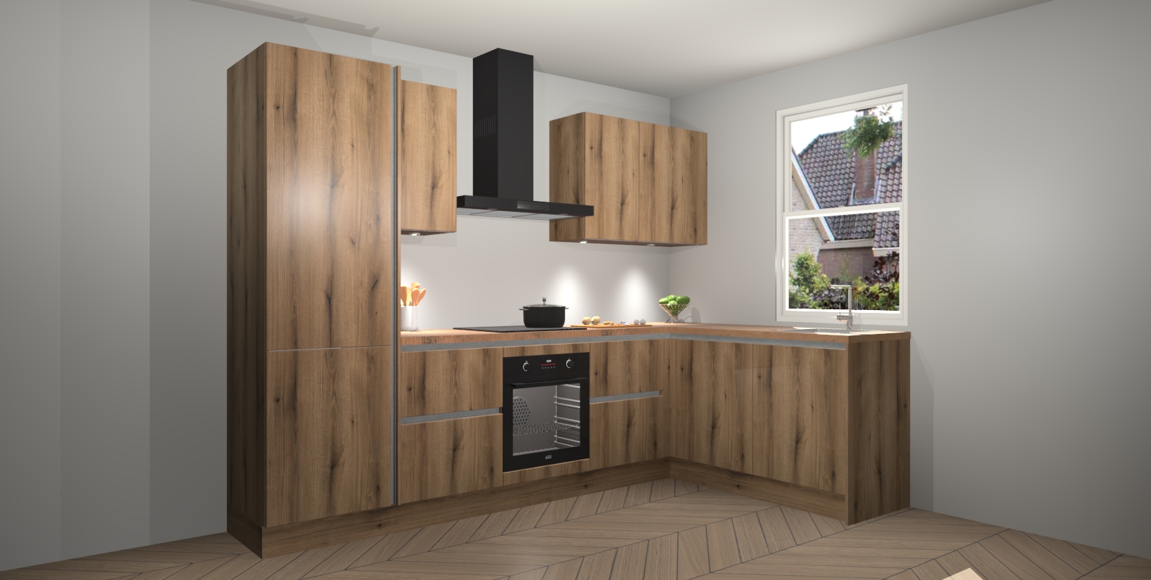 Maak kennis met de trendsettende en luxe Goud Eiken greeploze keuken Bazel! Deze uitzonderlijke keuken van Duitse kwaliteit is stijlvol, modern en perfect om elk huis mee op te fleuren. De binnenkant van de kasten worden meegenomen in een bijpassende kleur om een samenhangende eigentijdse esthetiek te voltooien. U zult dol zijn op hoe uw pas gerenoveerde keuken eruitziet met de Goud Eiken editie!