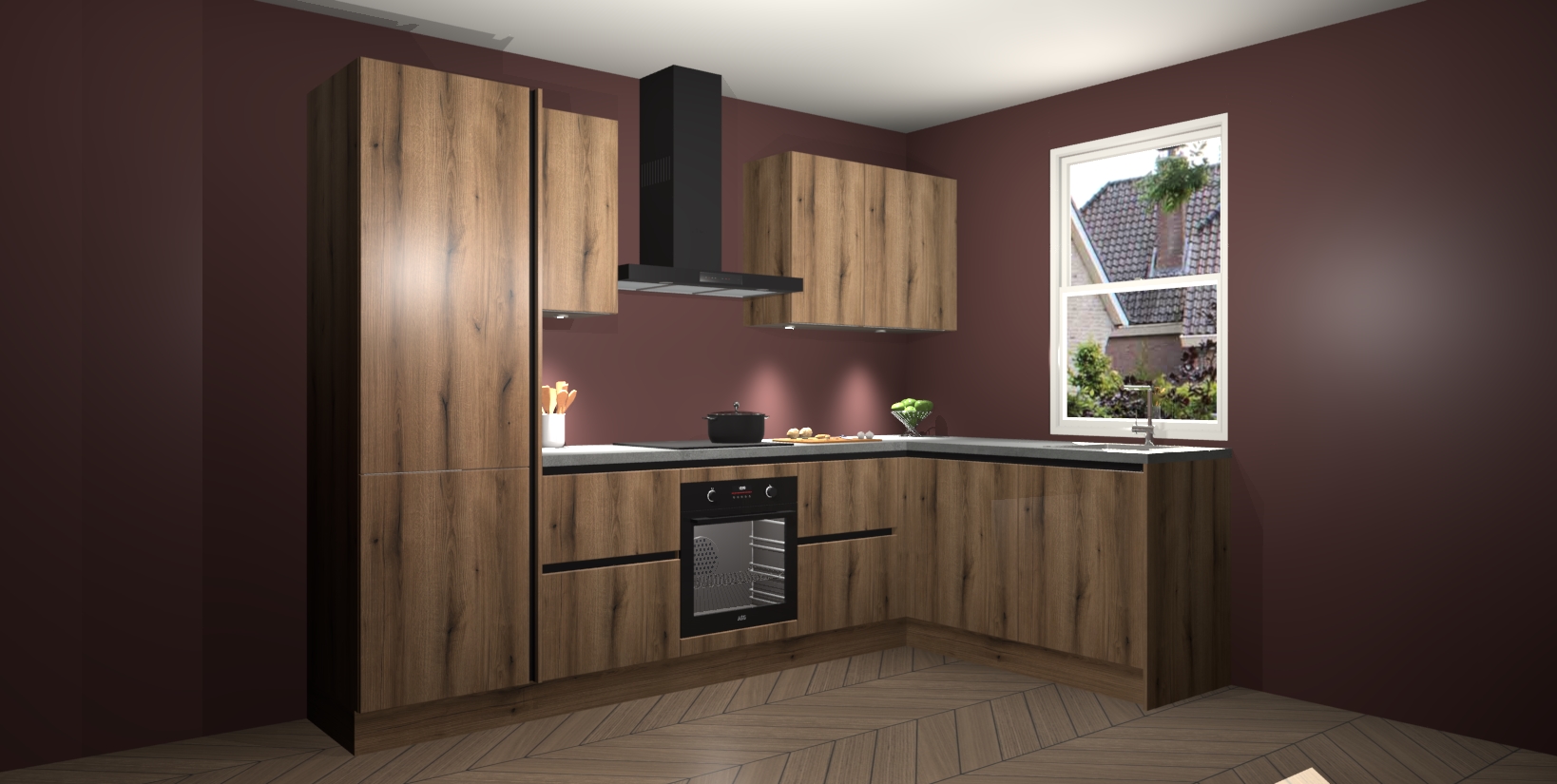 Maak kennis met de trendsettende en luxe Goud Eiken greeploze keuken Bazel! Deze uitzonderlijke keuken van Duitse kwaliteit is stijlvol, modern en perfect om elk huis mee op te fleuren. De binnenkant van de kasten worden meegenomen in een bijpassende kleur om een samenhangende eigentijdse esthetiek te voltooien. U zult dol zijn op hoe uw pas gerenoveerde keuken eruitziet met de Goud Eiken editie!