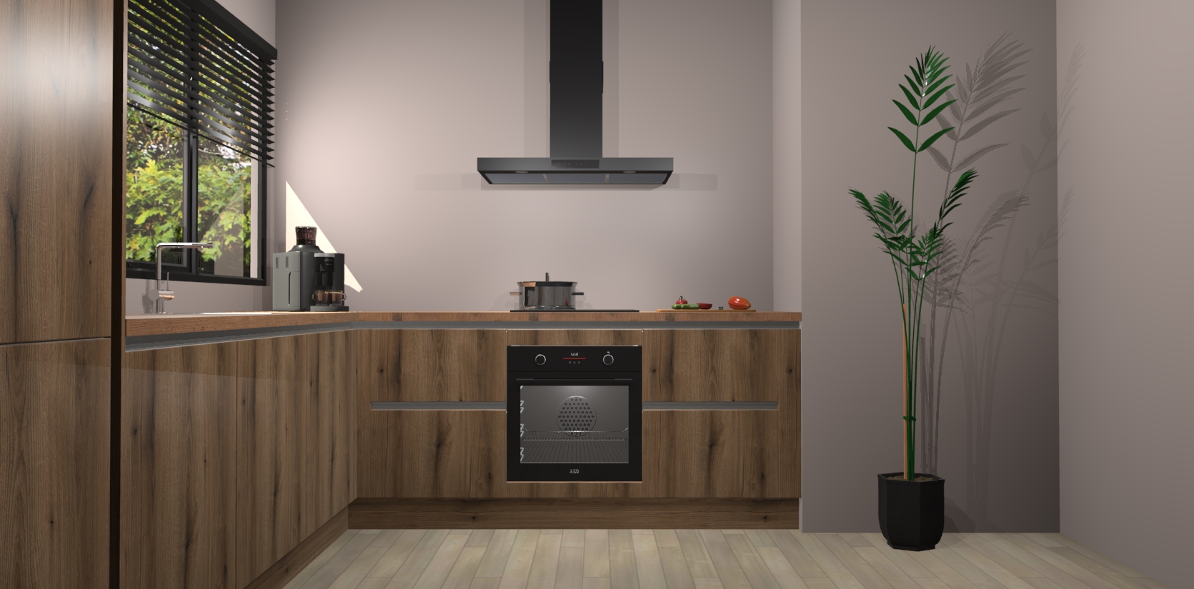 Met een modern, tijdloos design en ruime opslagruimte, zult u zich in no-time thuis voelen in uw nieuwe keuken. Uw leven wordt eenvoudiger met de soft-close deuren die voor het ultieme stille comfort zorgen - geen geluid dat u stoort terwijl u kookt. Ook is de keuken voorzien van 5 ingebouwde apparaten: een oven, inductie kookplaat, afzuigkap, vaatwasser en koelkast. Deze kunnen gemakkelijk na bestelling worden bijgewerkt naar AEG - waardoor uw luxe ervaring compleet is.