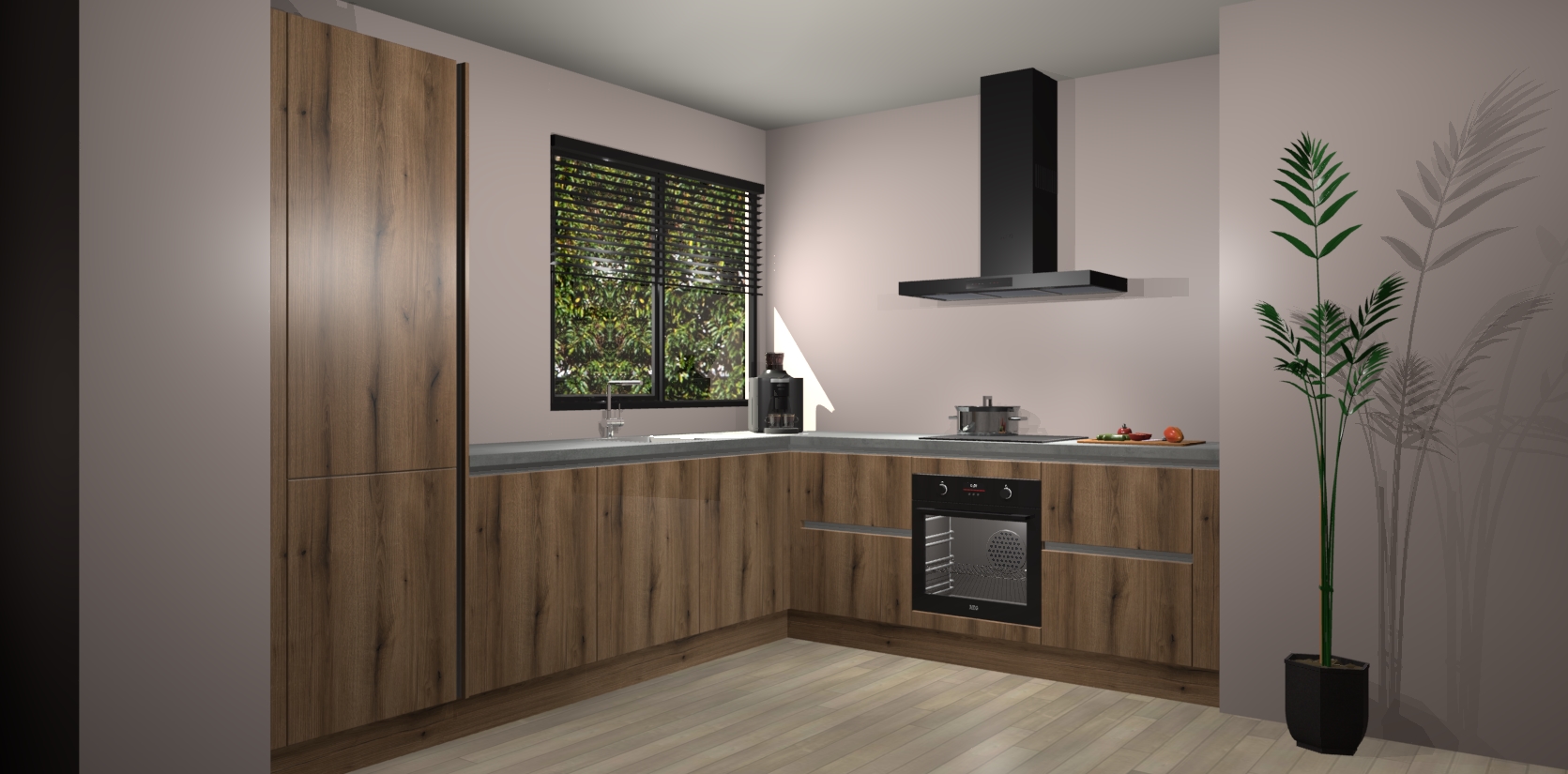 Wij presenteren de revolutie in keukens: de Goud Eiken greeploze keuken Benidorm. Met modern design, een tijdloos uiterlijk en kasten die al voor gemonteerd worden geleverd, laat deze stijlvolle keuken uw kookervaring op een hele nieuwe manier transformeren.