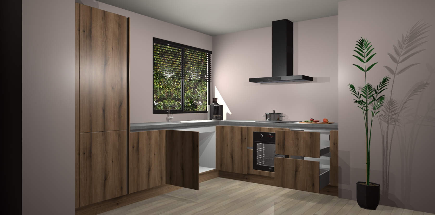 Met een modern, tijdloos design en ruime opslagruimte, zult u zich in no-time thuis voelen in uw nieuwe keuken. Uw leven wordt eenvoudiger met de soft-close deuren die voor het ultieme stille comfort zorgen - geen geluid dat u stoort terwijl u kookt. Ook is de keuken voorzien van 5 ingebouwde apparaten: een oven, inductie kookplaat, afzuigkap, vaatwasser en koelkast. Deze kunnen gemakkelijk na bestelling worden bijgewerkt naar AEG - waardoor uw luxe ervaring compleet is.