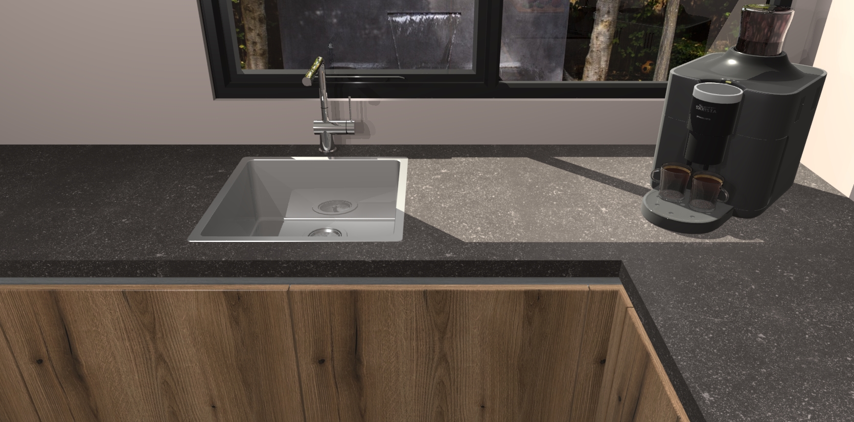 - Bij een hoekwerkblad zijn de hoeken in gevreesd en op maat gemaakt