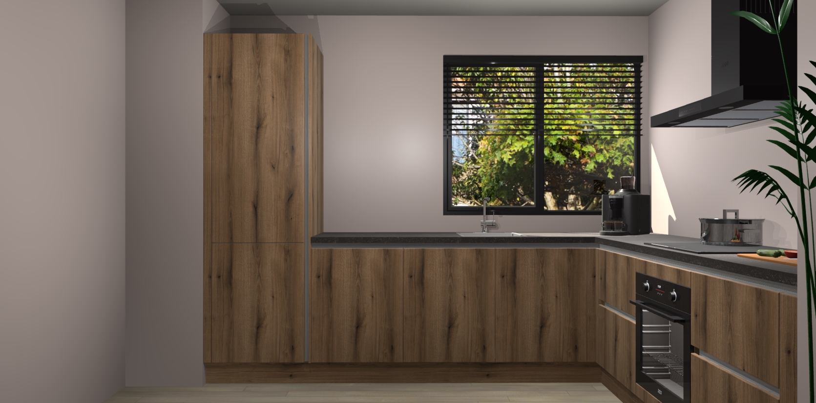 Wij presenteren de revolutie in keukens: de Goud Eiken greeploze keuken Benidorm. Met modern design, een tijdloos uiterlijk en kasten die al voor gemonteerd worden geleverd, laat deze stijlvolle keuken uw kookervaring op een hele nieuwe manier transformeren.