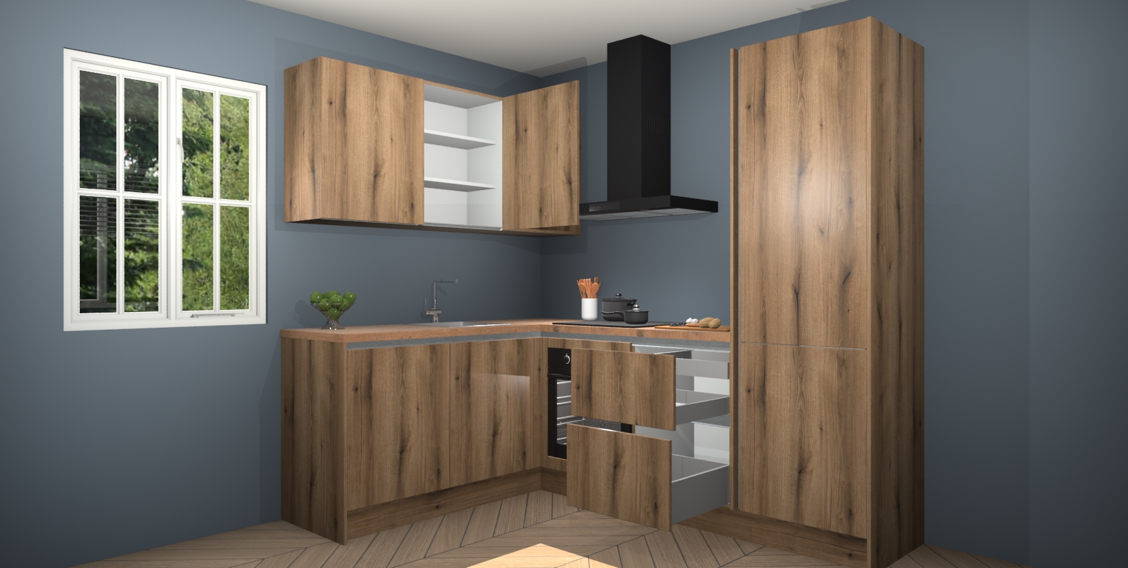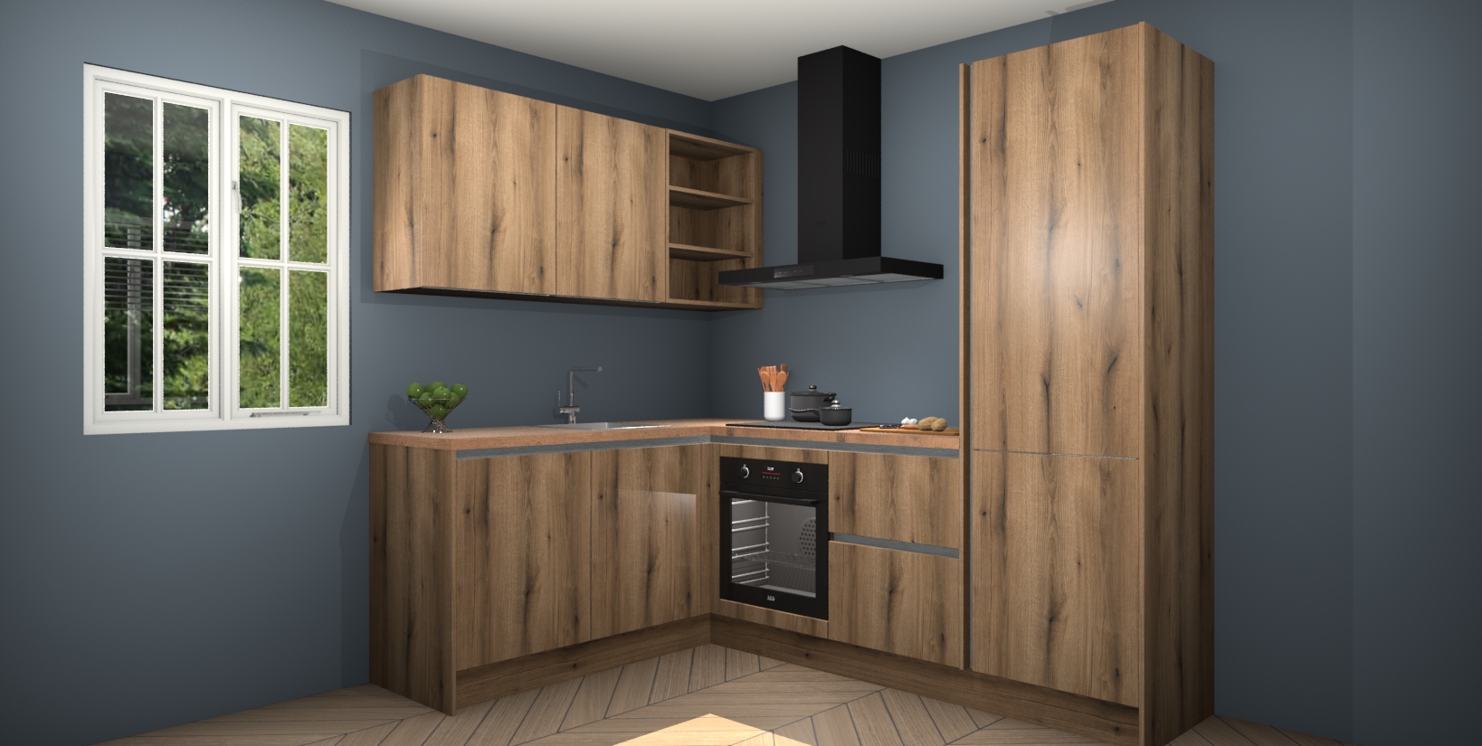 Maak kennis met de Goud Eiken greeploze keuken Boekarest, een moderne hoekkeuken waar al uw vrienden en familie jaloers op zullen zijn! Het verbluffende mooie ontwerp past in elk interieur en is een ideale keuze voor wie op zoek is naar een klassieke, maar verfijnde look.