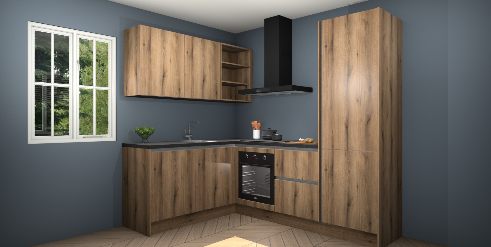 Maak kennis met de Goud Eiken greeploze keuken Boekarest, een moderne hoekkeuken waar al uw vrienden en familie jaloers op zullen zijn! Het verbluffende mooie ontwerp past in elk interieur en is een ideale keuze voor wie op zoek is naar een klassieke, maar verfijnde look.