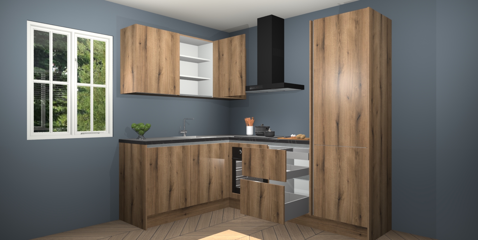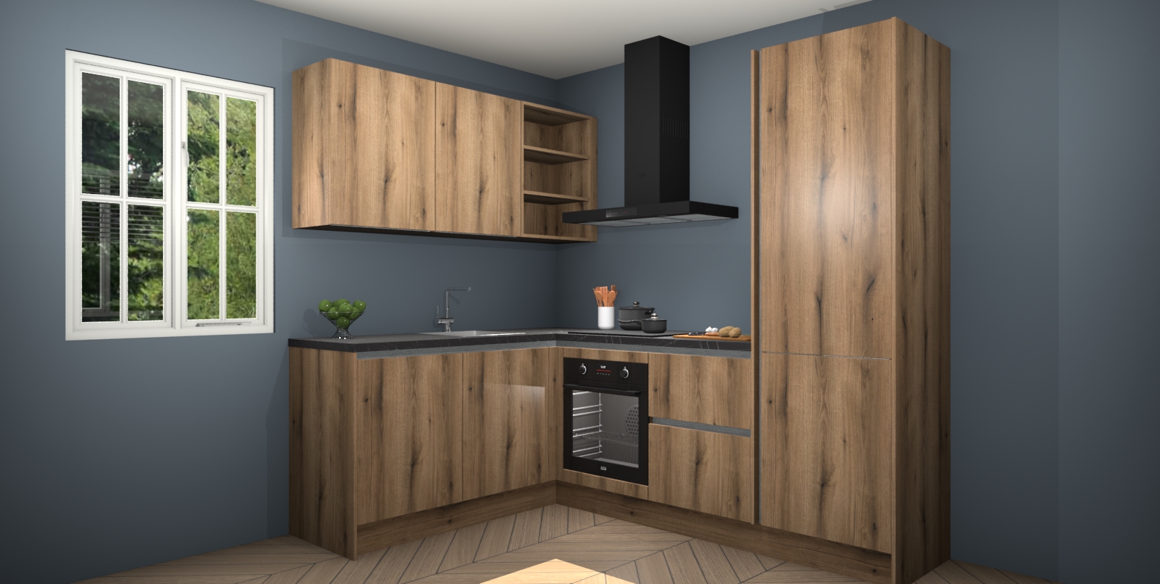 Maak kennis met de Goud Eiken greeploze keuken Boekarest, een moderne hoekkeuken waar al uw vrienden en familie jaloers op zullen zijn! Het verbluffende mooie ontwerp past in elk interieur en is een ideale keuze voor wie op zoek is naar een klassieke, maar verfijnde look.