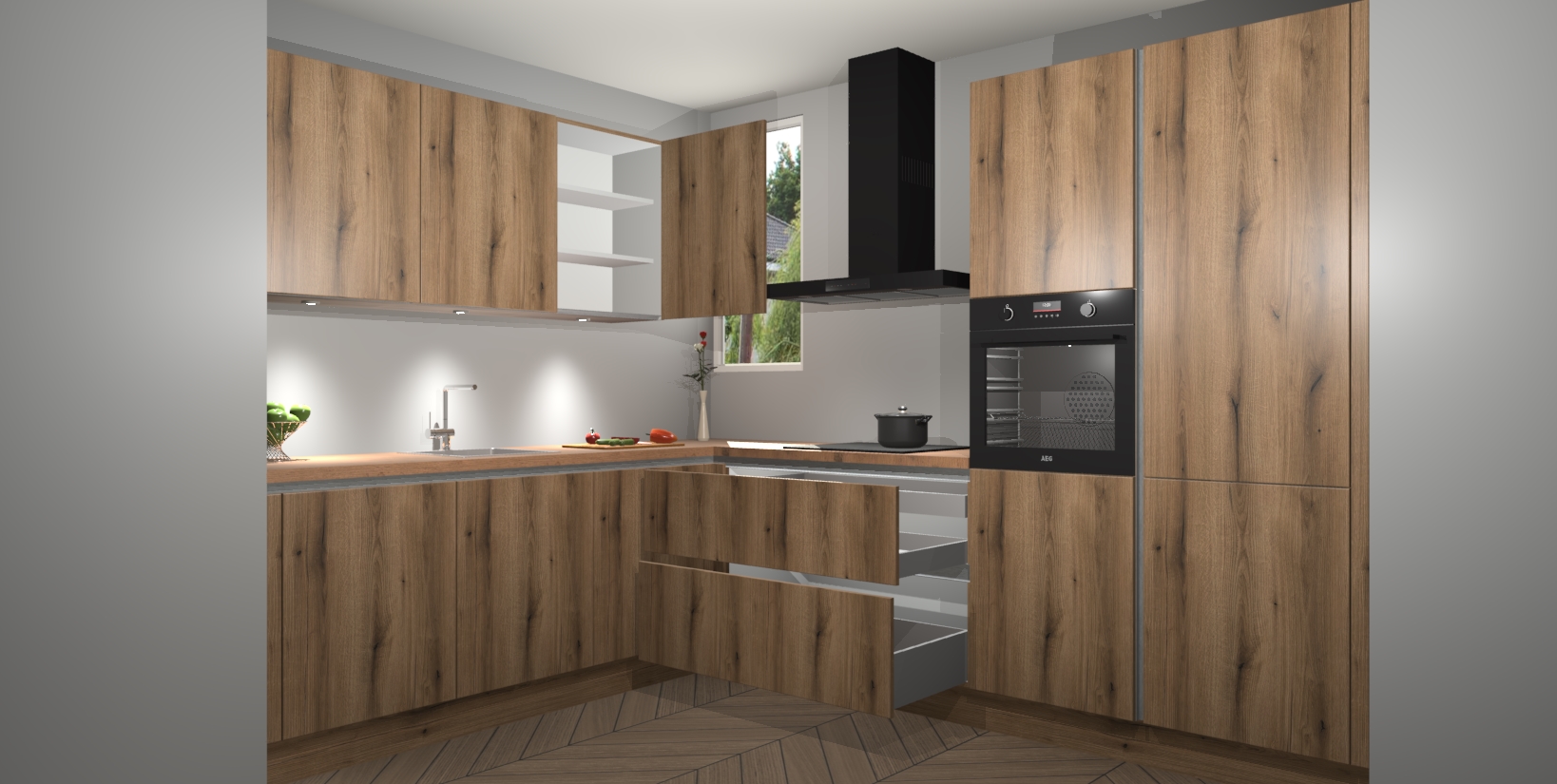 De ruime opbergruimte van dit model maakt het bereiden van voedsel en het gebruik van apparaten snel en gemakkelijk. Het beste van alles is dat het wordt geleverd met vijf inbouwapparaten: een oven, inductiekookplaat, afzuigkap, vaatwasser en koelkast - die allemaal gemakkelijk kunnen worden opgewaardeerd naar AEG na aankoop. Wat de gemaksfactor nog groter maakt, is het feit dat alle cabines voorgemonteerd worden geleverd, zodat u er meteen mee aan de slag kunt!