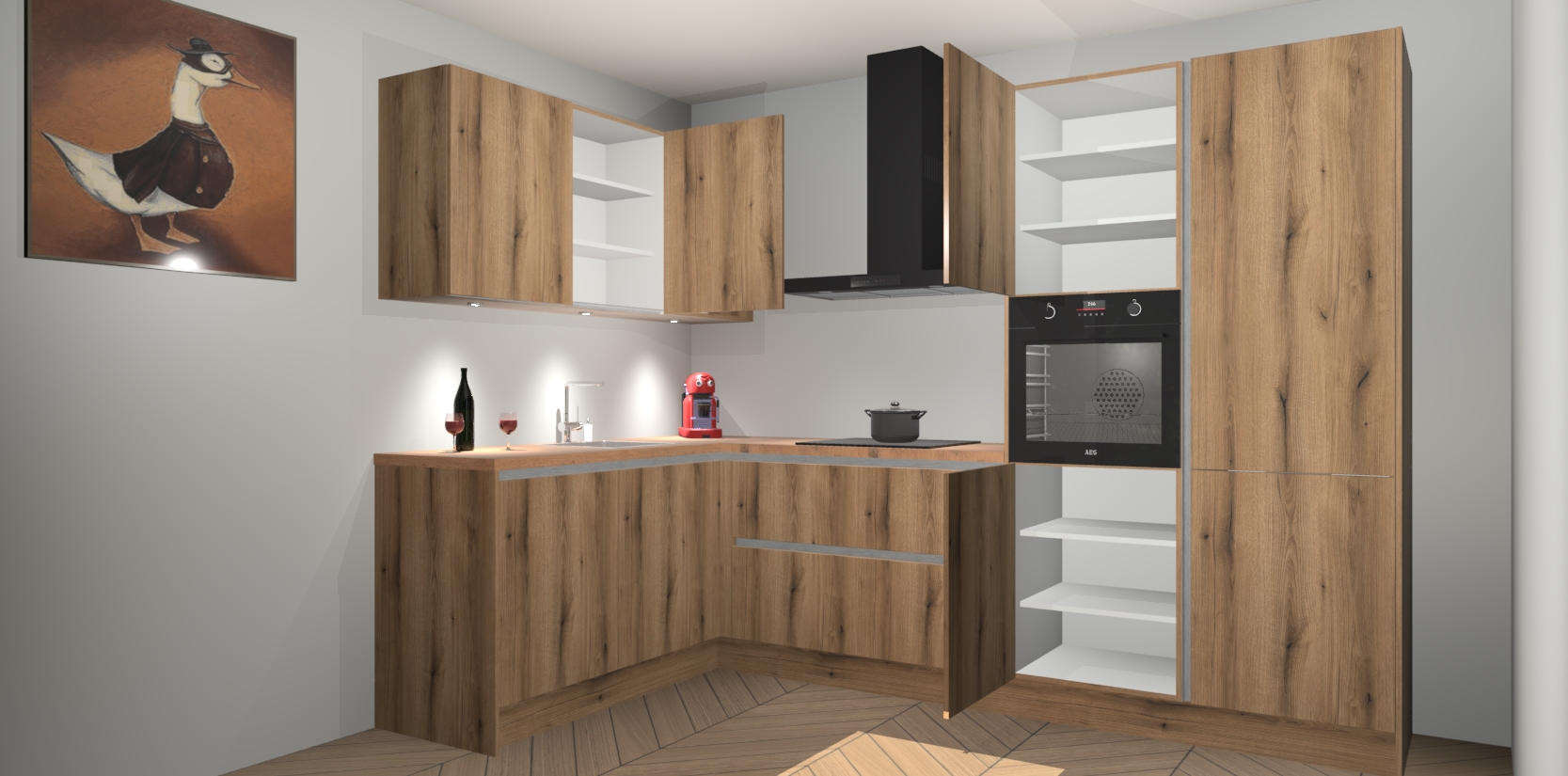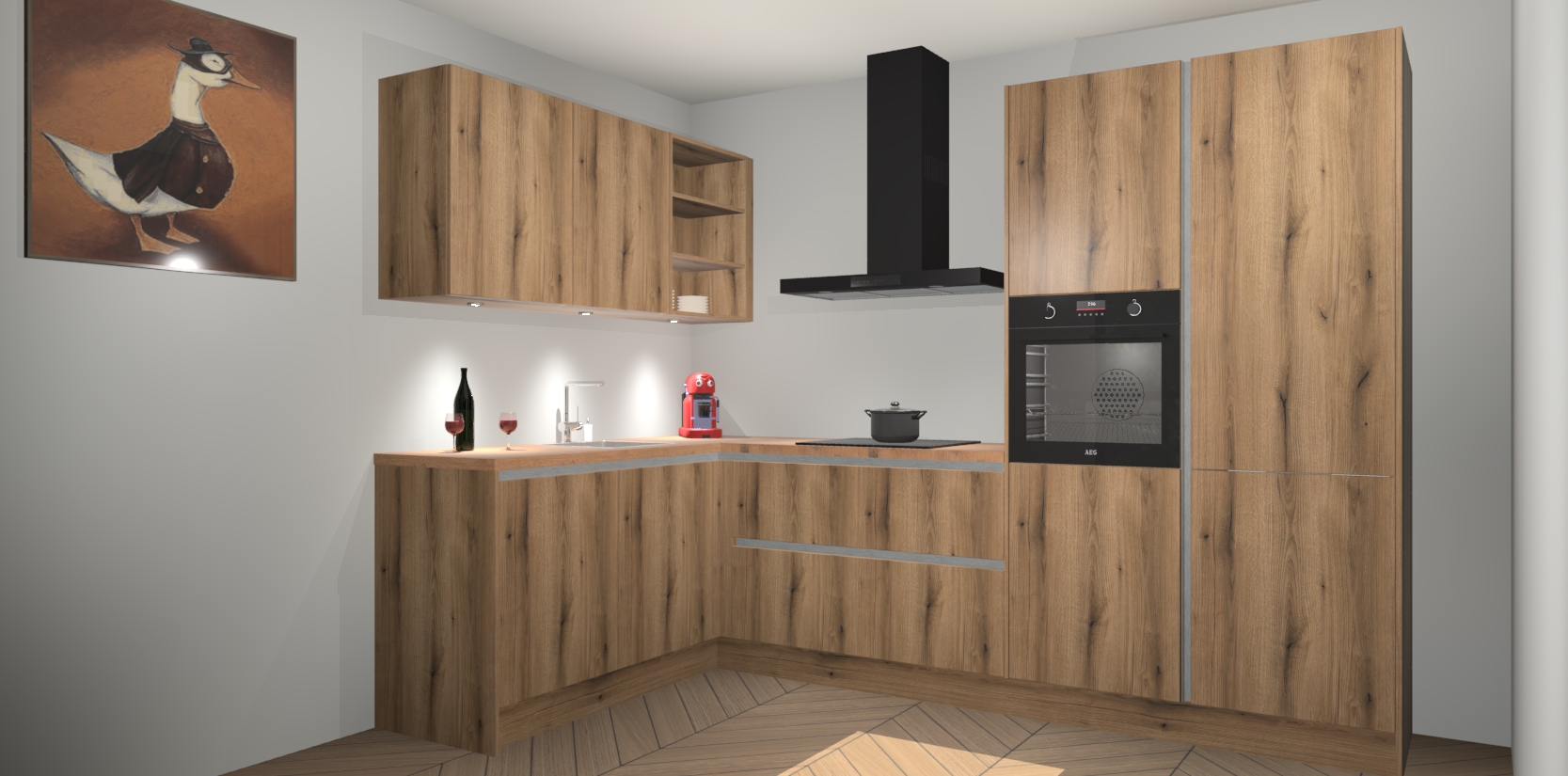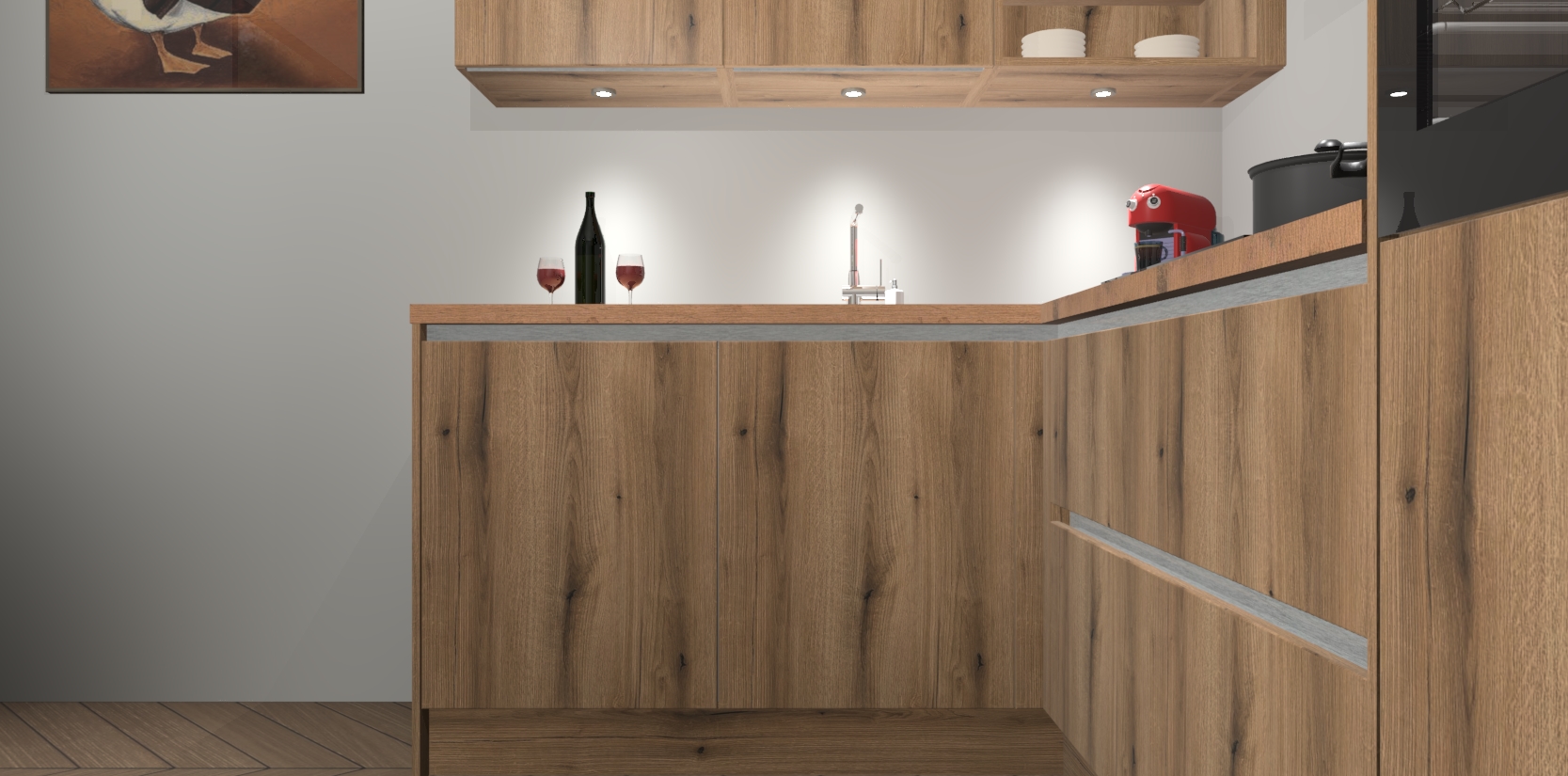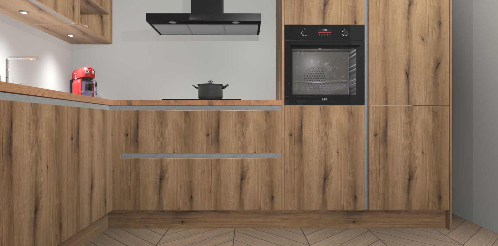 De Goud Eiken greeploze keuken Cognac gaat alleen maar om de beste keukenervaring. Kies gewoon de beste apparatuur en ongeëvenaarde Duitse constructie die u thuis wilt hebben en verander uw huiskamer hartelijkheid meteen in professionaliteit. Laat de toon weten dat u gemakkelijk kan genieten van alle luxe die u verdiend? Bestel nu de Goud Eiken greeploze keuken Cognac voor bij u thuis!