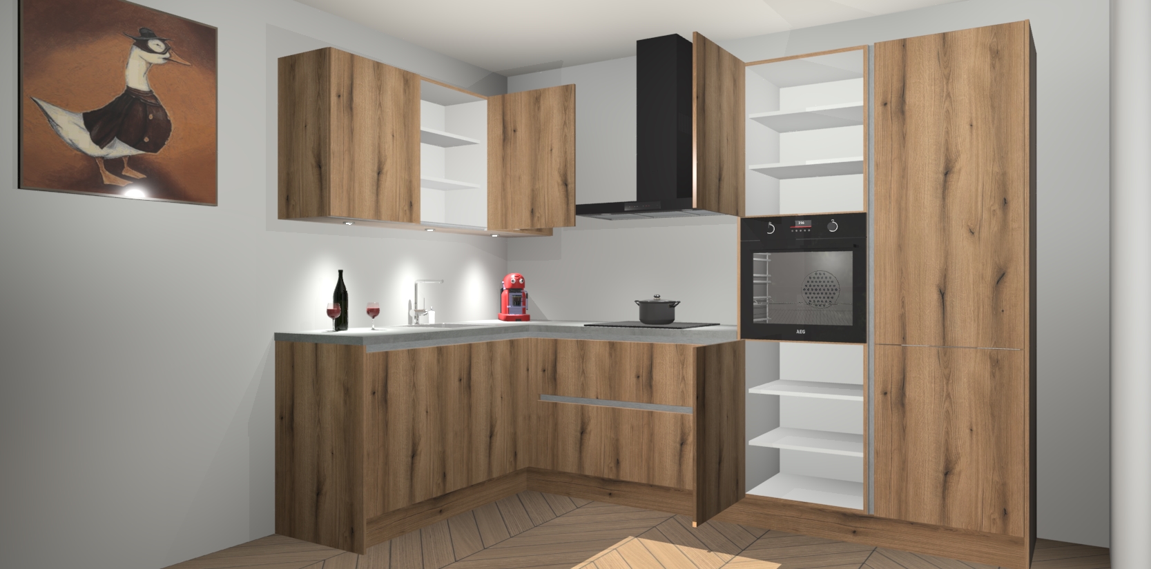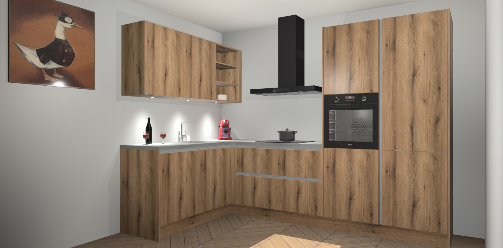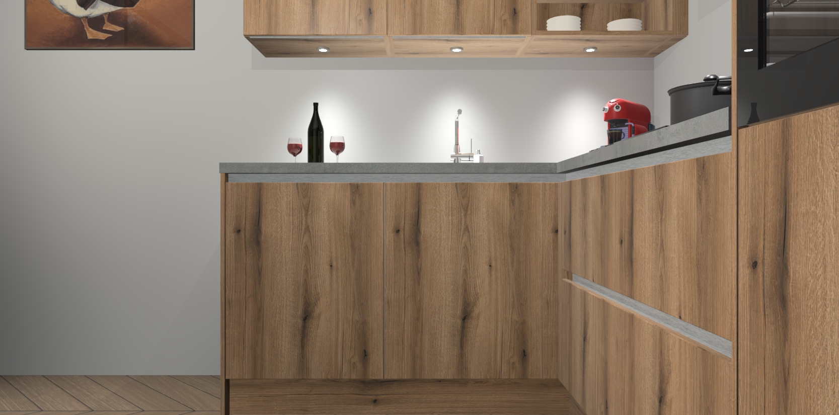 De Goud Eiken greeploze keuken Cognac gaat alleen maar om de beste keukenervaring. Kies gewoon de beste apparatuur en ongeëvenaarde Duitse constructie die u thuis wilt hebben en verander uw huiskamer hartelijkheid meteen in professionaliteit. Laat de toon weten dat u gemakkelijk kan genieten van alle luxe die u verdiend? Bestel nu de Goud Eiken greeploze keuken Cognac voor bij u thuis!