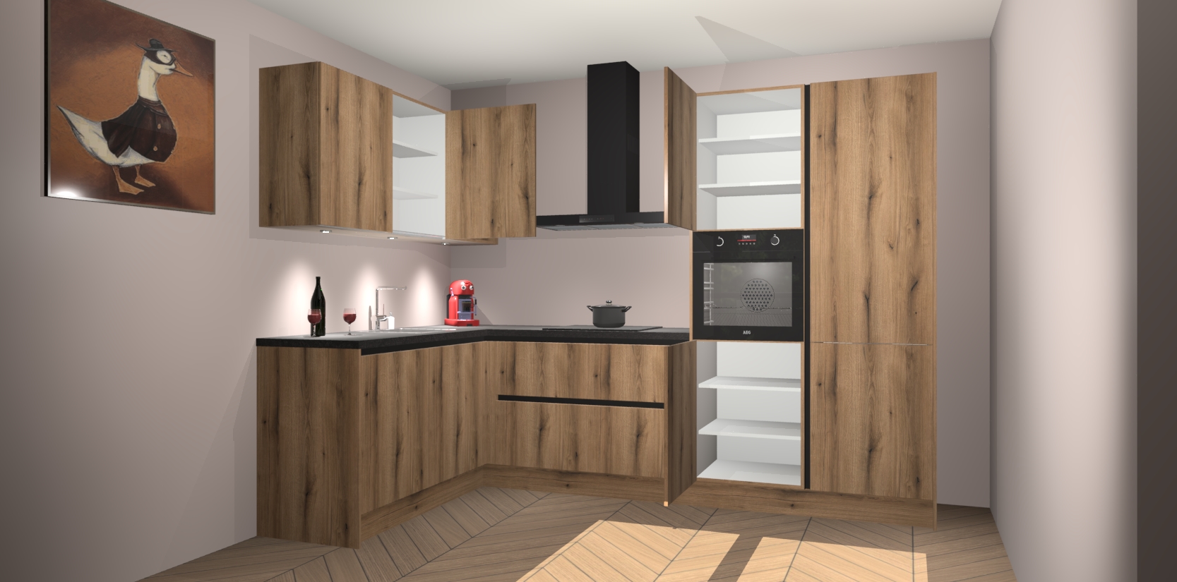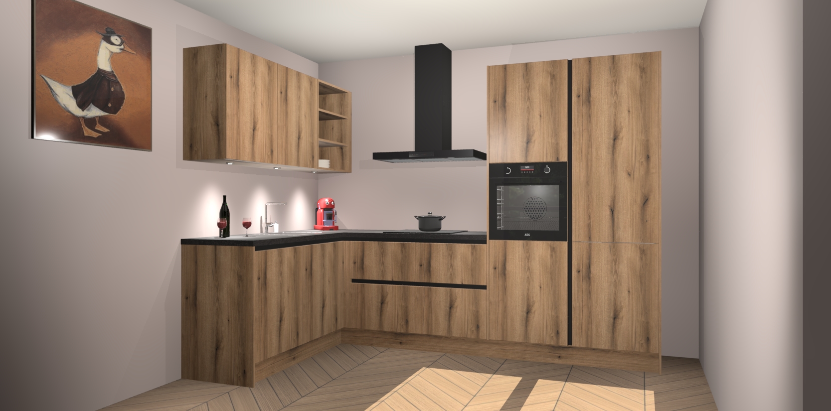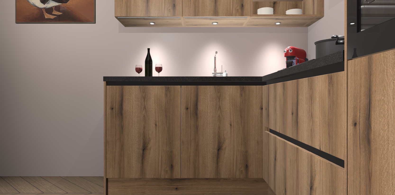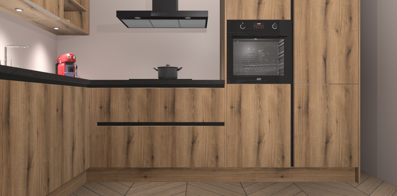 De Goud Eiken greeploze keuken Cognac gaat alleen maar om de beste keukenervaring. Kies gewoon de beste apparatuur en ongeëvenaarde Duitse constructie die u thuis wilt hebben en verander uw huiskamer hartelijkheid meteen in professionaliteit. Laat de toon weten dat u gemakkelijk kan genieten van alle luxe die u verdiend? Bestel nu de Goud Eiken greeploze keuken Cognac voor bij u thuis!