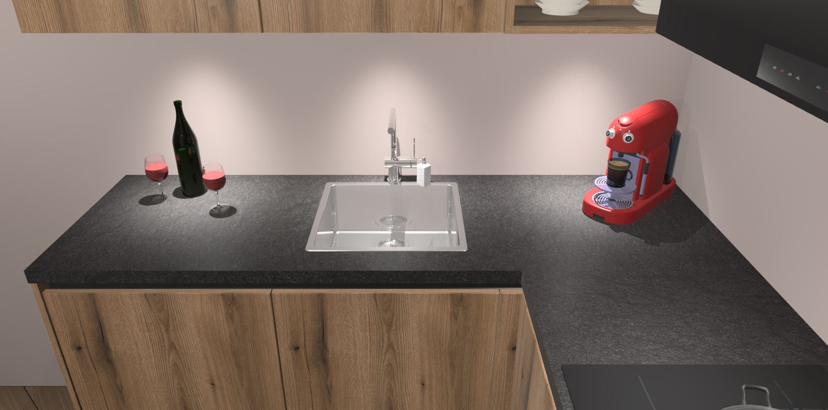 • Bij een hoekwerkblad zijn de hoeken in gevreesd en op maat gemaakt