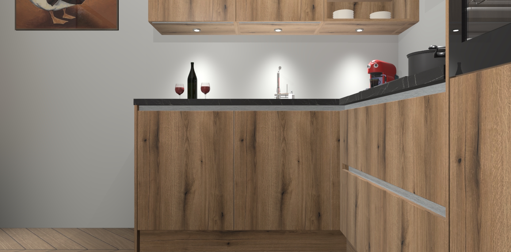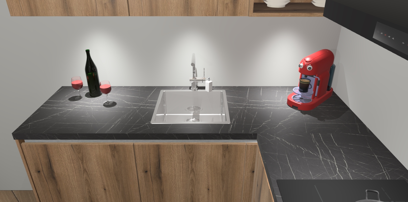 • Bij een hoekwerkblad zijn de hoeken in gevreesd en op maat gemaakt