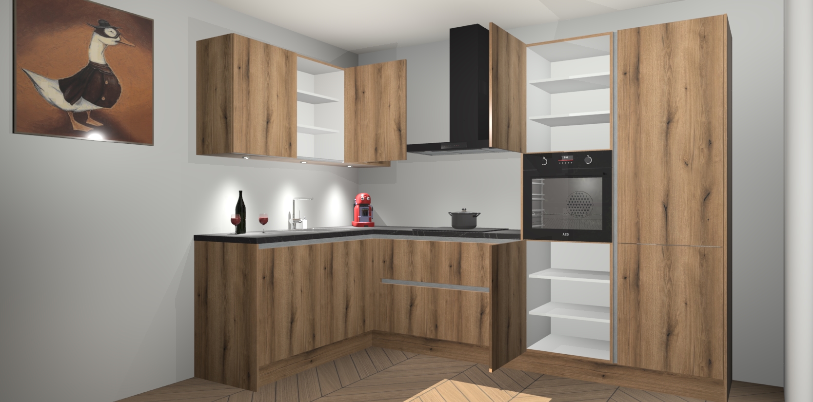 De Goud Eiken greeploze keuken Cognac gaat alleen maar om de beste keukenervaring. Kies gewoon de beste apparatuur en ongeëvenaarde Duitse constructie die u thuis wilt hebben en verander uw huiskamer hartelijkheid meteen in professionaliteit. Laat de toon weten dat u gemakkelijk kan genieten van alle luxe die u verdiend? Bestel nu de Goud Eiken greeploze keuken Cognac voor bij u thuis!