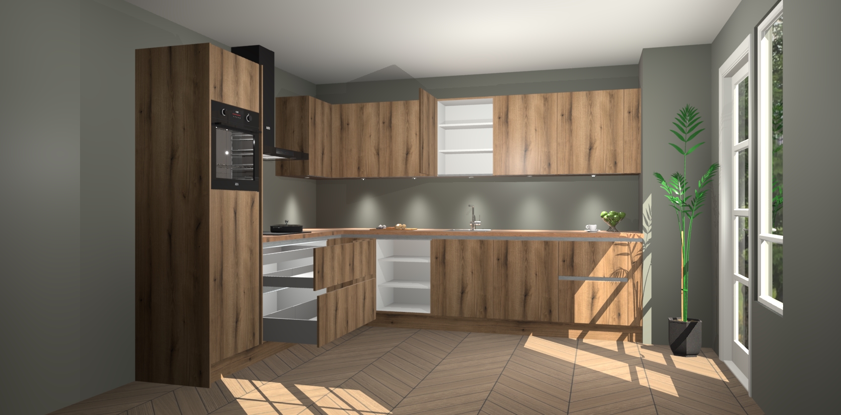 Als u op zoek bent naar de perfecte keuken om uw huis mee op te fleuren, zoek dan niet verder dan de Goud Eiken greeploze keuken Debar. Deze prachtige hoekkeuken straalt warmte en luxe uit met een modern maar geraffineerd design. Maak u nooit meer zorgen of u wel genoeg opbergruimte heeft; dit meubel biedt voldoende opbergruimte om al uw keukenbenodigdheden binnen handbereik te houden.