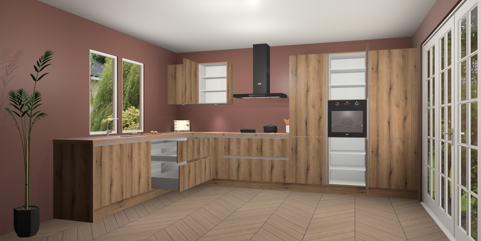Kom dichtbij de perfecte keuken van uw dromen met de Goud Eiken greeploze keuken Debrecen. Met een prachtige houtlook en eigentijds ontwerp, straalt deze keuken warmte en sfeer uit. Of u nu liefhebber bent van traditionele of moderne stijlen, er is genoeg ruimte om aan al uw behoeften te voldoen.