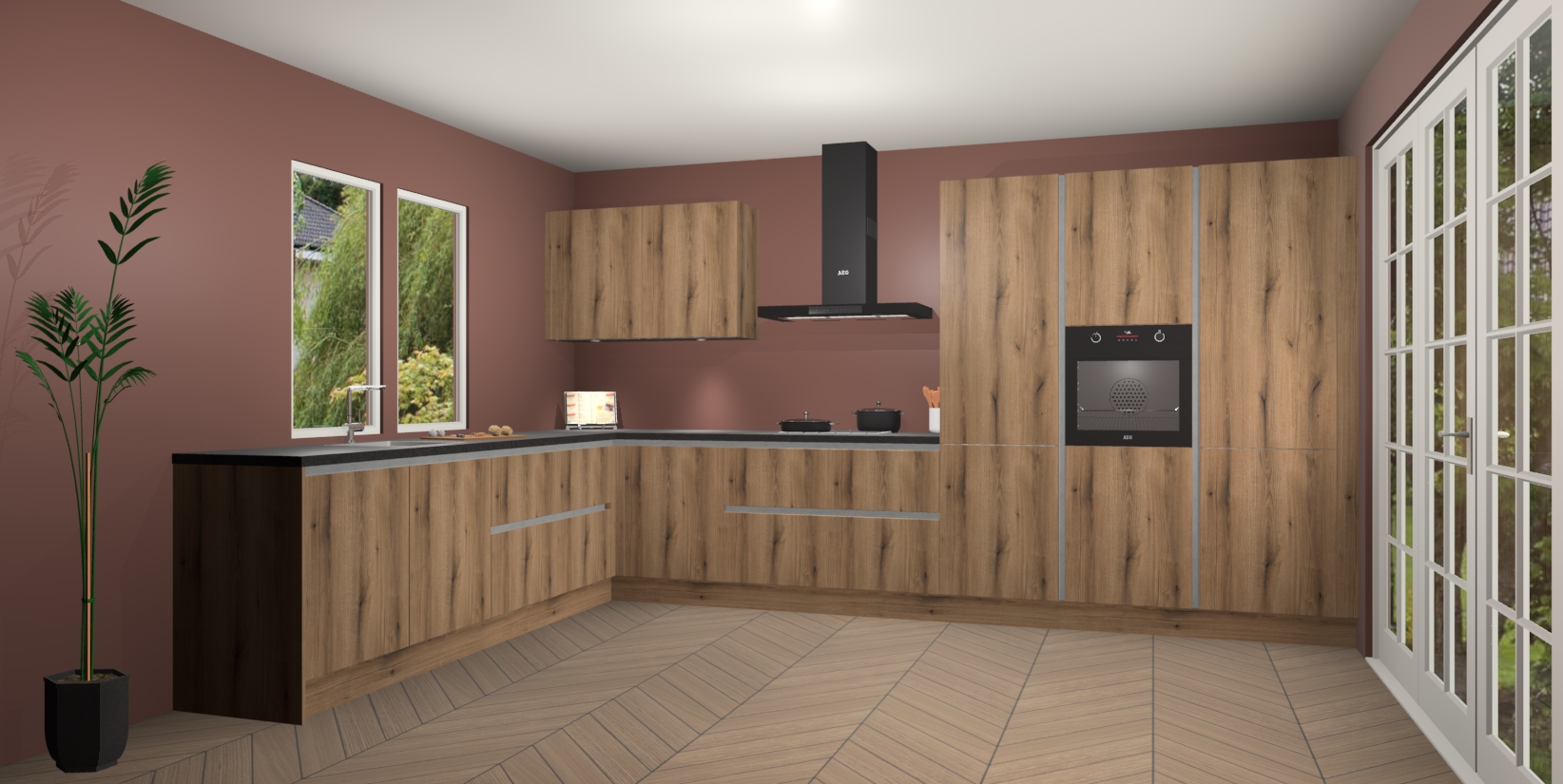 Heeft u nog apparatuur nodig? Geen probleem: de Goud Eiken greeploze keuken Debrecen bevat vijf ingebouwde apparaten - een oven, inductiekookplaat, afzuigkap, vaatwasser en koelkast - die gemakkelijk kunnen worden bijgewerkt naar AEG na bestelling. En als dat nog niet genoeg is; onze kasten worden pre-geassembleerd geleverd en zijn verkrijgbaar tegen een vastgeroeste lage prijs! U hoeft nooit meer te zoeken naar goede kwaliteit en service want onze producten hebben echt Duitse kwaliteit.