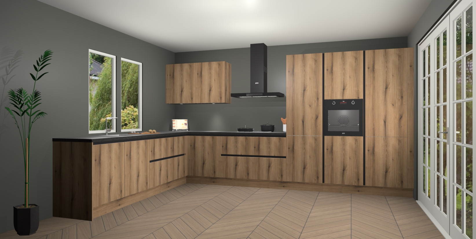 Kom dichtbij de perfecte keuken van uw dromen met de Goud Eiken greeploze keuken Debrecen. Met een prachtige houtlook en eigentijds ontwerp, straalt deze keuken warmte en sfeer uit. Of u nu liefhebber bent van traditionele of moderne stijlen, er is genoeg ruimte om aan al uw behoeften te voldoen.