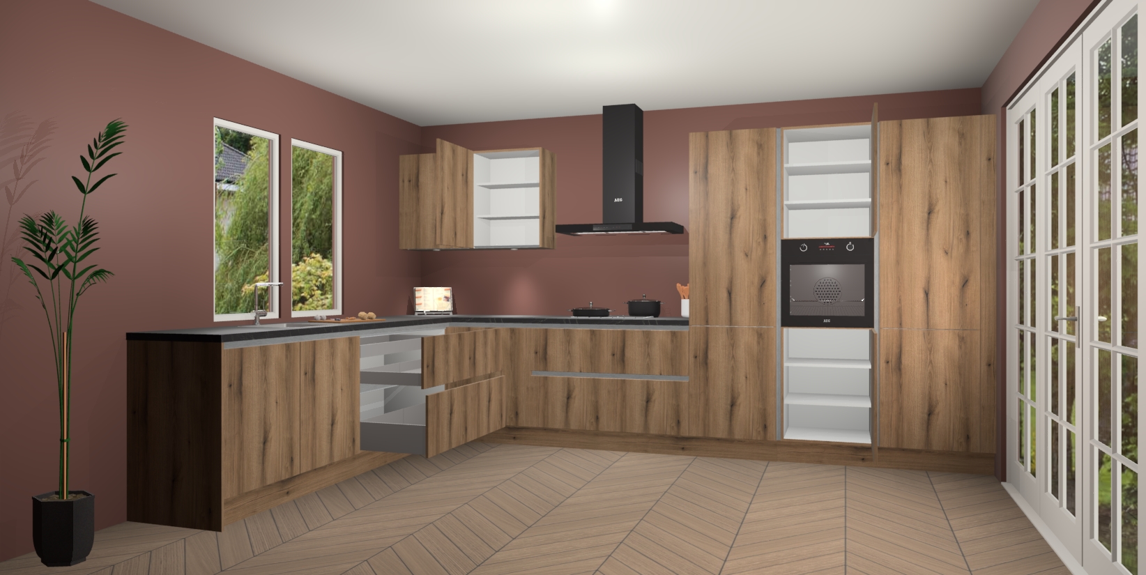 Kom dichtbij de perfecte keuken van uw dromen met de Goud Eiken greeploze keuken Debrecen. Met een prachtige houtlook en eigentijds ontwerp, straalt deze keuken warmte en sfeer uit. Of u nu liefhebber bent van traditionele of moderne stijlen, er is genoeg ruimte om aan al uw behoeften te voldoen.
