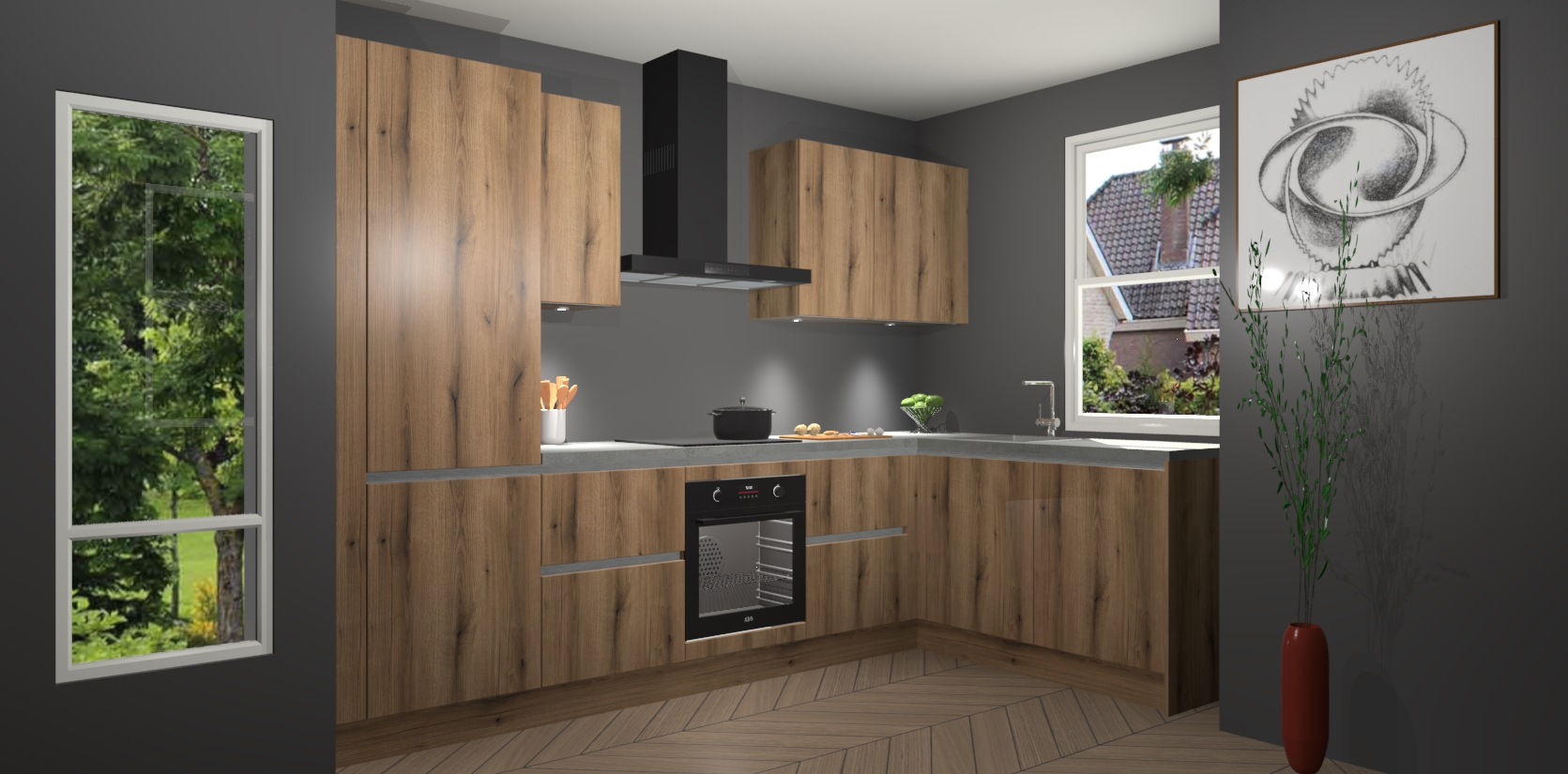 De Goud Eiken greeploze keuken Geneve is precies wat u nodig heeft als u op zoek bent naar modern design, versmolten met tijdloze schoonheid. De strakke afwerking voegt klasse toe terwijl het toch een uitnodigende sfeer behoudt; zeker om zowel gasten als uzelf te inspireren om in stijl te gaan koken! En nog beter, het zal uw budget niet breken - dus waarom wachten? Met de Goud Eiken greeploze keuken Geneve bent u verzekerd van kwaliteit zonder in te leveren op de prijs!