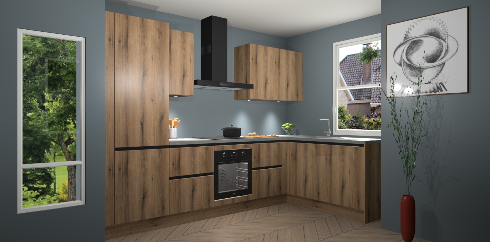 De Goud Eiken greeploze keuken Geneve is precies wat u nodig heeft als u op zoek bent naar modern design, versmolten met tijdloze schoonheid. De strakke afwerking voegt klasse toe terwijl het toch een uitnodigende sfeer behoudt; zeker om zowel gasten als uzelf te inspireren om in stijl te gaan koken! En nog beter, het zal uw budget niet breken - dus waarom wachten? Met de Goud Eiken greeploze keuken Geneve bent u verzekerd van kwaliteit zonder in te leveren op de prijs!