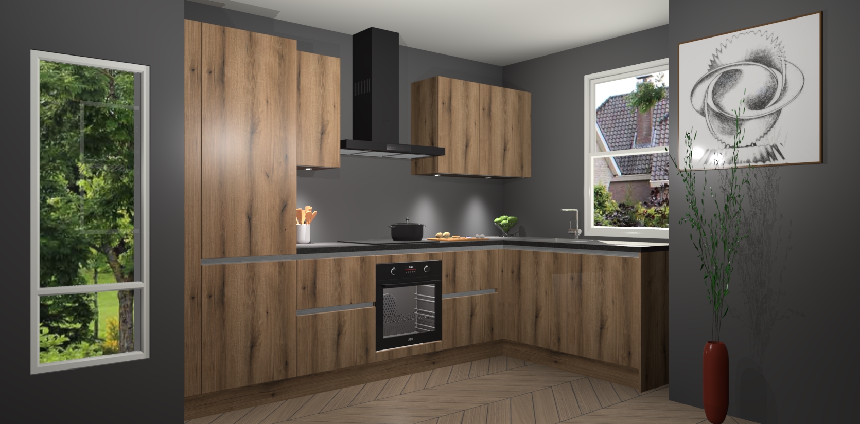 De Goud Eiken greeploze keuken Geneve is precies wat u nodig heeft als u op zoek bent naar modern design, versmolten met tijdloze schoonheid. De strakke afwerking voegt klasse toe terwijl het toch een uitnodigende sfeer behoudt; zeker om zowel gasten als uzelf te inspireren om in stijl te gaan koken! En nog beter, het zal uw budget niet breken - dus waarom wachten? Met de Goud Eiken greeploze keuken Geneve bent u verzekerd van kwaliteit zonder in te leveren op de prijs!