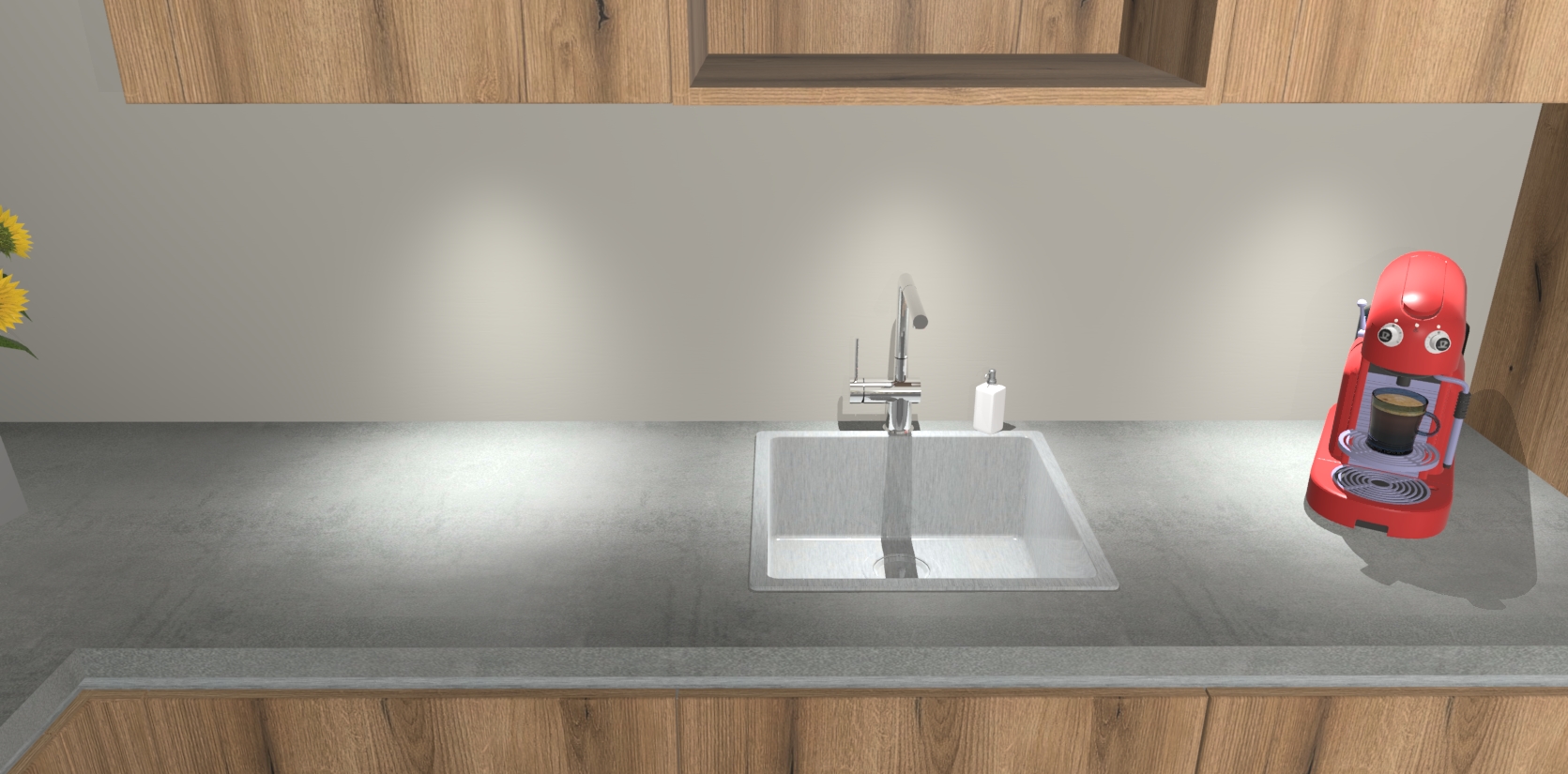 - De spoelbak is nog niet in gevreesd. Dit dient tijdens het werk gedaan te worden