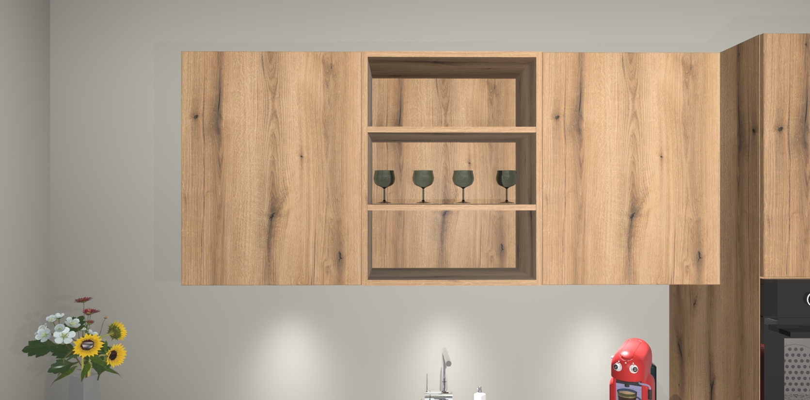 Stelt u zich voor dat u bij thuiskomst wordt begroet door de luxe aanwezigheid van de Goud Eiken greeploze keuken Gotenburg, een modern design dat op de eerste plaats staat als het gaat om stijl en functionaliteit! Met hoogwaardige afwerking en elegantie die ongeëvenaard elegant is, brengt deze keuken gezelligheid in uw huis. We zijn er zeker van dat u verrast zult zijn door alle extravagantie die deze keuken te bieden heeft.