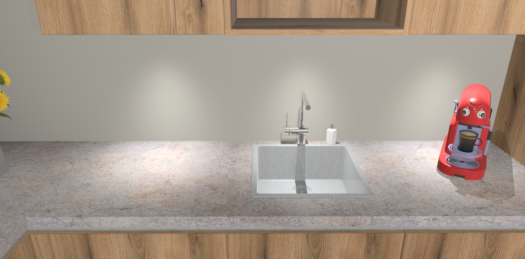 - De spoelbak is nog niet in gevreesd. Dit dient tijdens het werk gedaan te worden