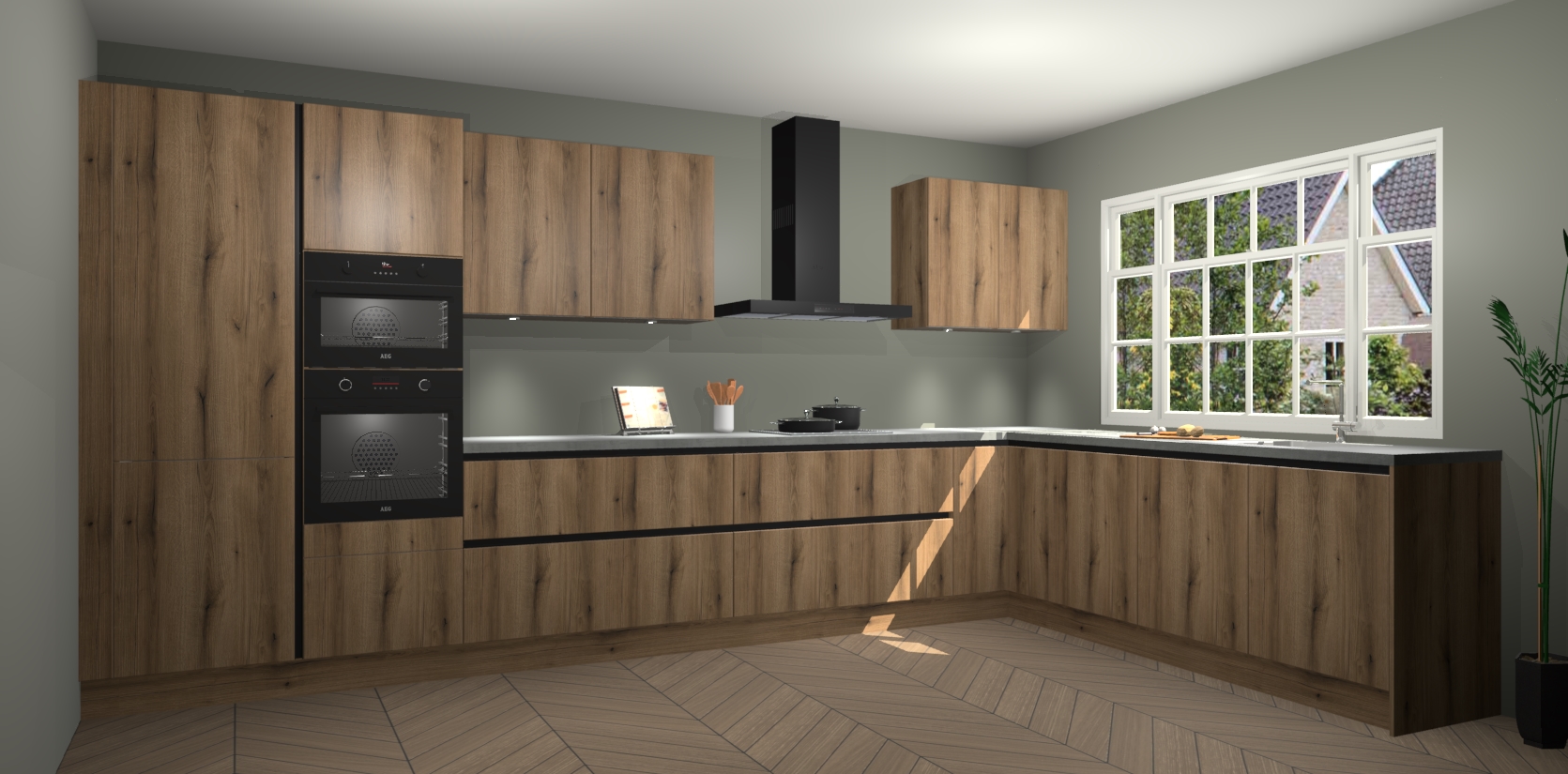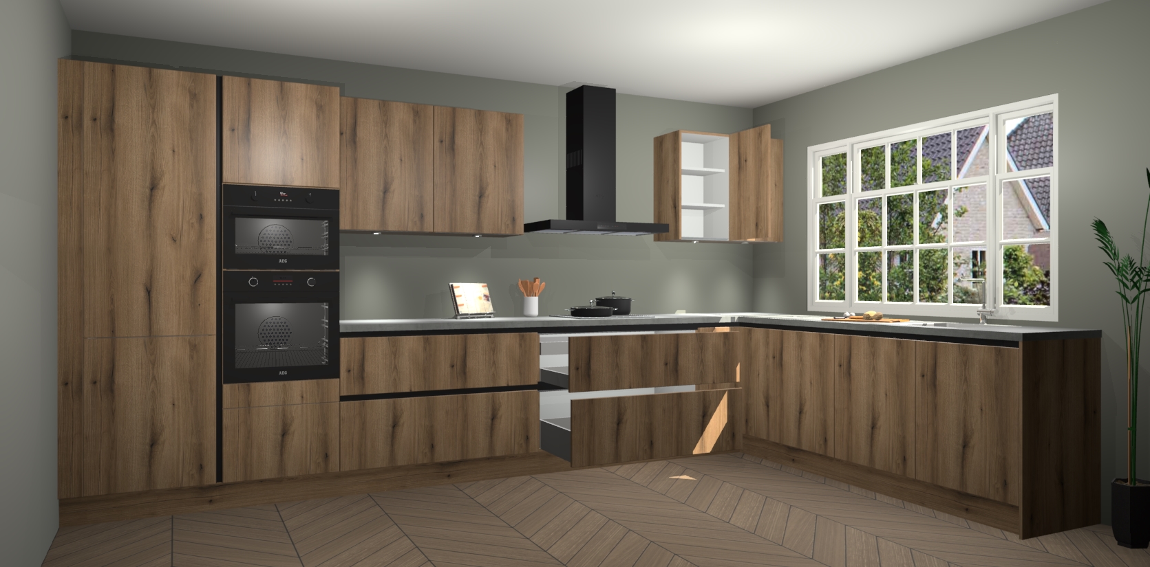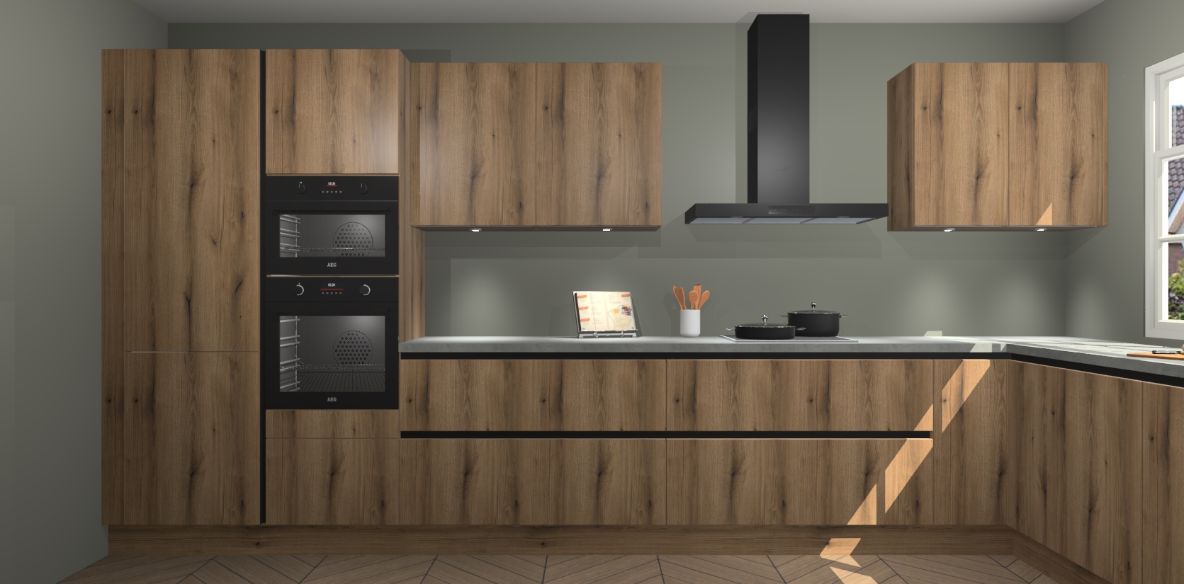 Kom dichtbij de perfecte keuken van uw dromen met de goud eiken greeploze keuken Graz. Met een prachtige houtlook en eigentijds ontwerp, straalt deze keuken warmte en sfeer uit. Of u nu liefhebber bent van traditionele of moderne stijlen, er is genoeg ruimte om aan al uw behoeften te voldoen.