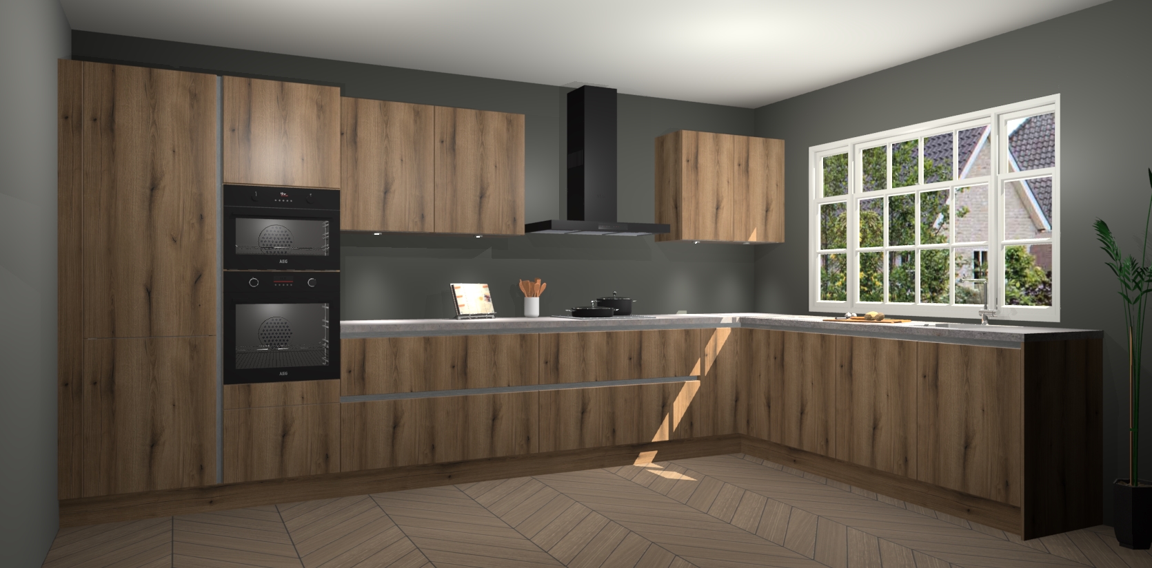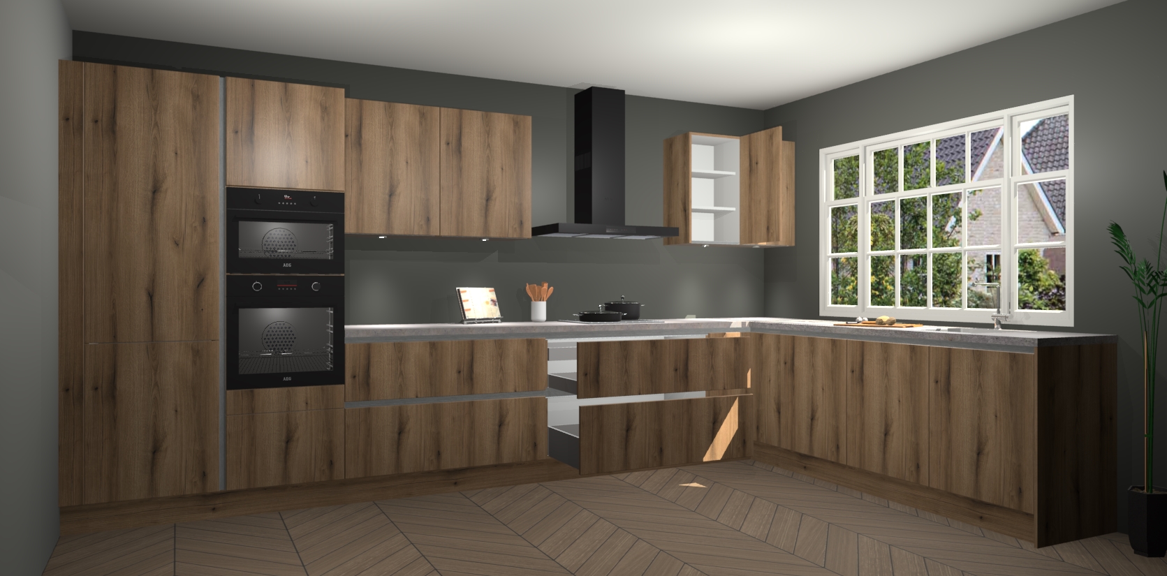Kom dichtbij de perfecte keuken van uw dromen met de goud eiken greeploze keuken Graz. Met een prachtige houtlook en eigentijds ontwerp, straalt deze keuken warmte en sfeer uit. Of u nu liefhebber bent van traditionele of moderne stijlen, er is genoeg ruimte om aan al uw behoeften te voldoen.
