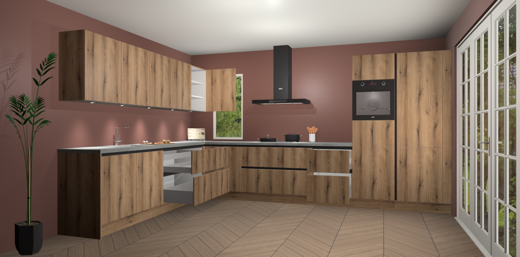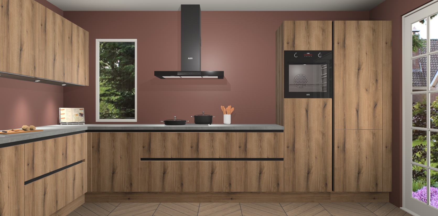 Heeft u nog apparatuur nodig? Geen probleem: de goud eiken greeploze keuken Harare bevat vijf ingebouwde apparaten - een oven, inductiekookplaat, afzuigkap, vaatwasser en koelkast - die gemakkelijk kunnen worden bijgewerkt naar AEG na bestelling. En als dat nog niet genoeg is; onze kasten worden pre-geassembleerd geleverd en zijn verkrijgbaar tegen een vastgeroeste lage prijs! U hoeft nooit meer te zoeken naar goede kwaliteit en service want onze producten hebben echt Duitse kwaliteit.