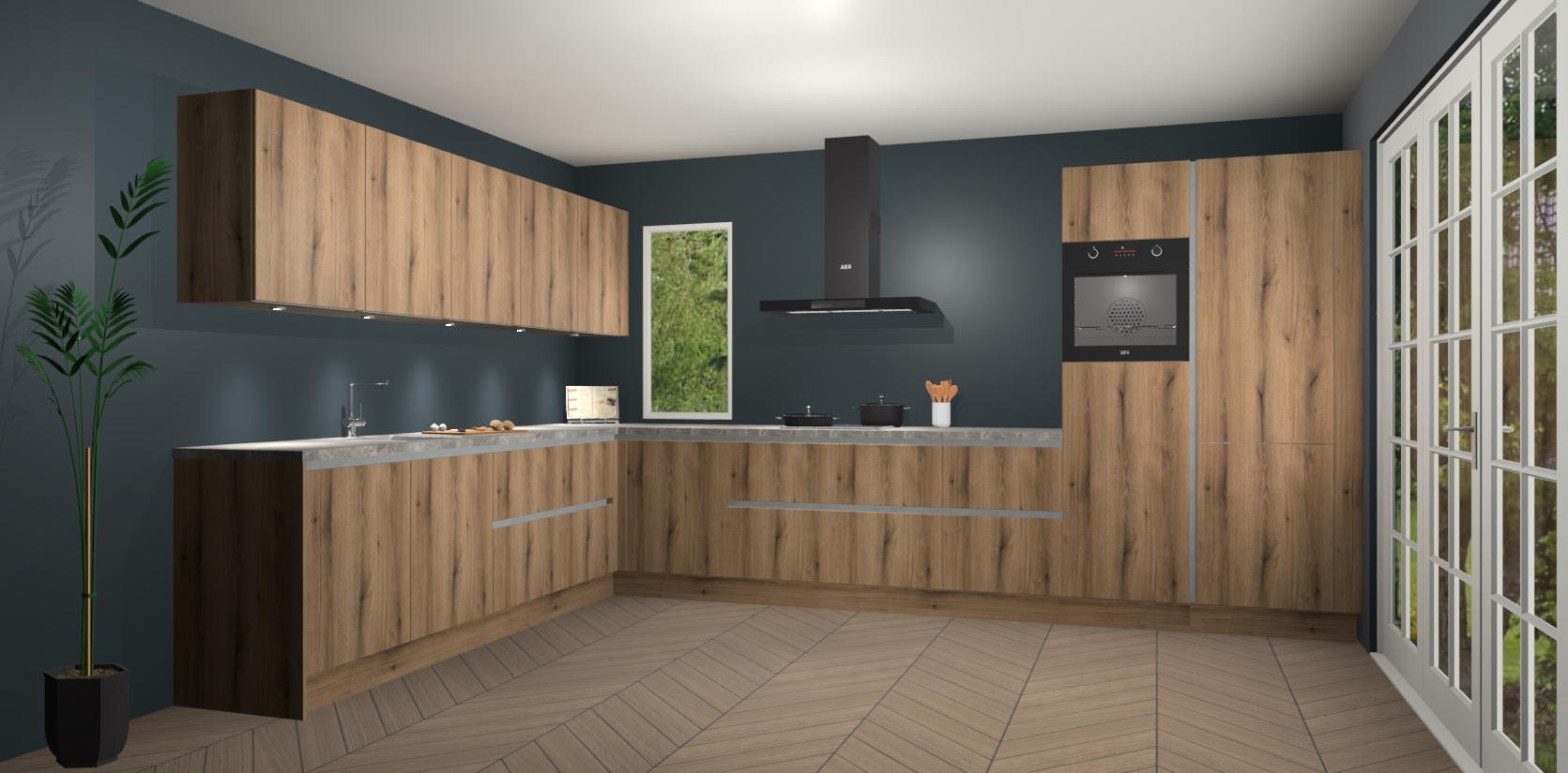 Kom dichtbij de perfecte keuken van uw dromen met de goud eiken greeploze keuken Harare. Met een prachtige houtlook en eigentijds ontwerp, straalt deze keuken warmte en sfeer uit. Of u nu liefhebber bent van traditionele of moderne stijlen, er is genoeg ruimte om aan al uw behoeften te voldoen.