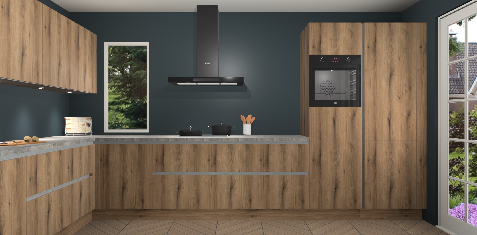 Heeft u nog apparatuur nodig? Geen probleem: de goud eiken greeploze keuken Harare bevat vijf ingebouwde apparaten - een oven, inductiekookplaat, afzuigkap, vaatwasser en koelkast - die gemakkelijk kunnen worden bijgewerkt naar AEG na bestelling. En als dat nog niet genoeg is; onze kasten worden pre-geassembleerd geleverd en zijn verkrijgbaar tegen een vastgeroeste lage prijs! U hoeft nooit meer te zoeken naar goede kwaliteit en service want onze producten hebben echt Duitse kwaliteit.