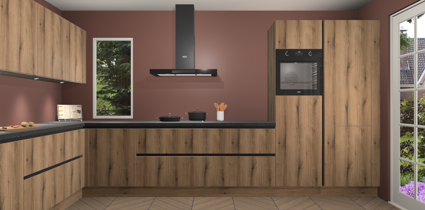 Heeft u nog apparatuur nodig? Geen probleem: de goud eiken greeploze keuken Harare bevat vijf ingebouwde apparaten - een oven, inductiekookplaat, afzuigkap, vaatwasser en koelkast - die gemakkelijk kunnen worden bijgewerkt naar AEG na bestelling. En als dat nog niet genoeg is; onze kasten worden pre-geassembleerd geleverd en zijn verkrijgbaar tegen een vastgeroeste lage prijs! U hoeft nooit meer te zoeken naar goede kwaliteit en service want onze producten hebben echt Duitse kwaliteit.
