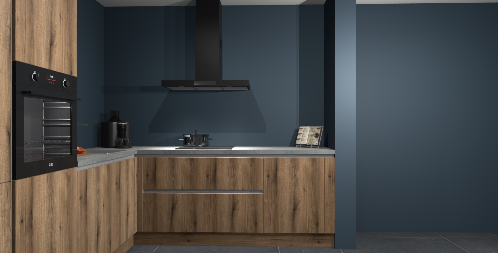 Met een modern, tijdloos design en ruime opslagruimte, zult u zich in no-time thuis voelen in uw nieuwe keuken. Uw leven wordt eenvoudiger met de soft-close deuren die voor het ultieme stille comfort zorgen - geen geluid dat u stoort terwijl u kookt. Ook is de keuken voorzien van 5 ingebouwde apparaten: een oven, inductie kookplaat, afzuigkap, vaatwasser en koelkast. Deze kunnen gemakkelijk na bestelling worden bijgewerkt naar AEG - waardoor uw luxe ervaring compleet is.