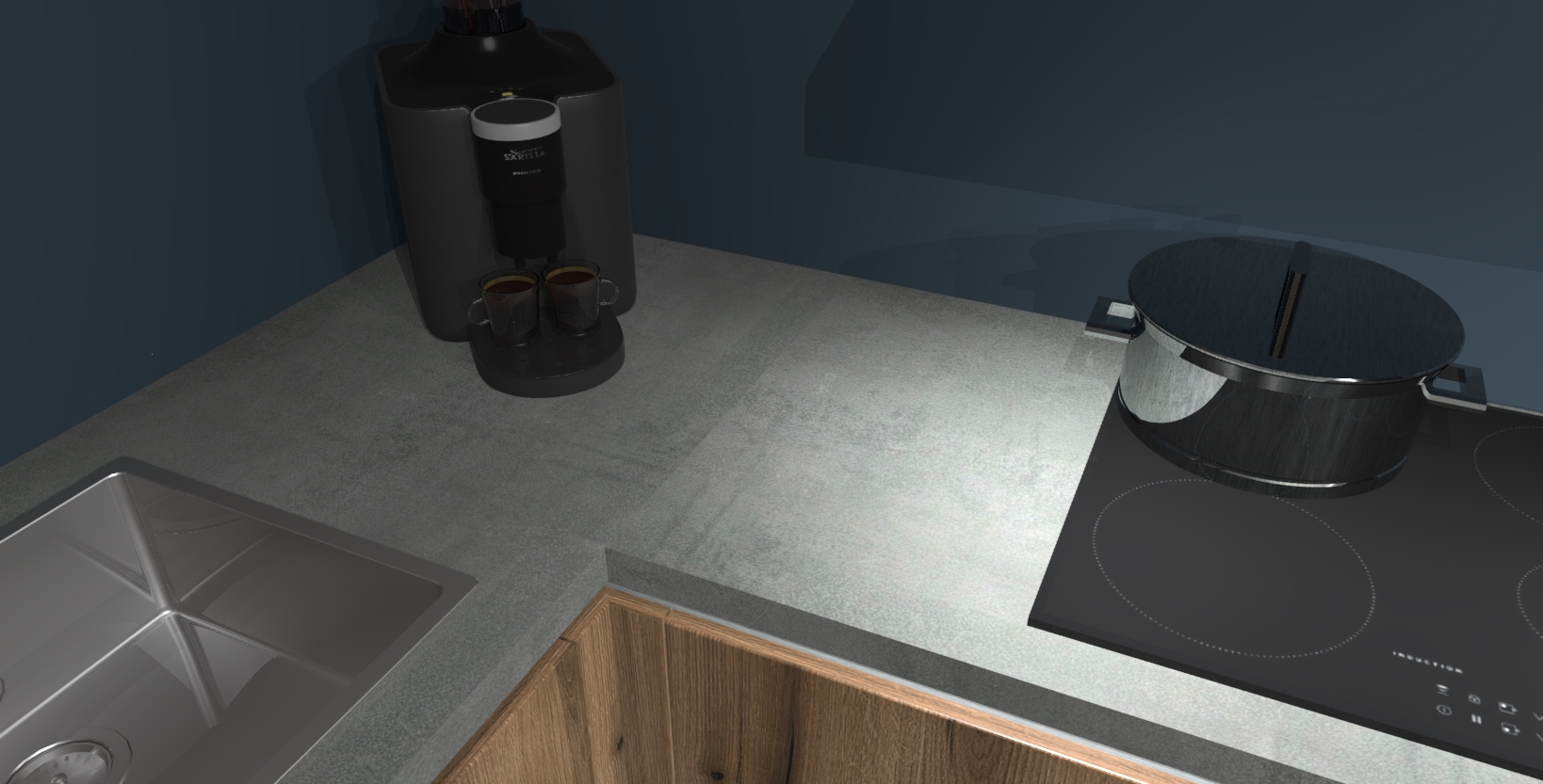 - Bij een hoekwerkblad zijn de hoeken in gevreesd en op maat gemaakt