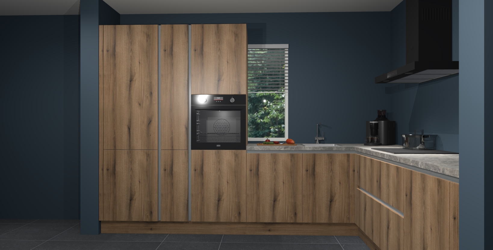 Met een modern, tijdloos design en ruime opslagruimte, zult u zich in no-time thuis voelen in uw nieuwe keuken. Uw leven wordt eenvoudiger met de soft-close deuren die voor het ultieme stille comfort zorgen - geen geluid dat u stoort terwijl u kookt. Ook is de keuken voorzien van 5 ingebouwde apparaten: een oven, inductie kookplaat, afzuigkap, vaatwasser en koelkast. Deze kunnen gemakkelijk na bestelling worden bijgewerkt naar AEG - waardoor uw luxe ervaring compleet is.