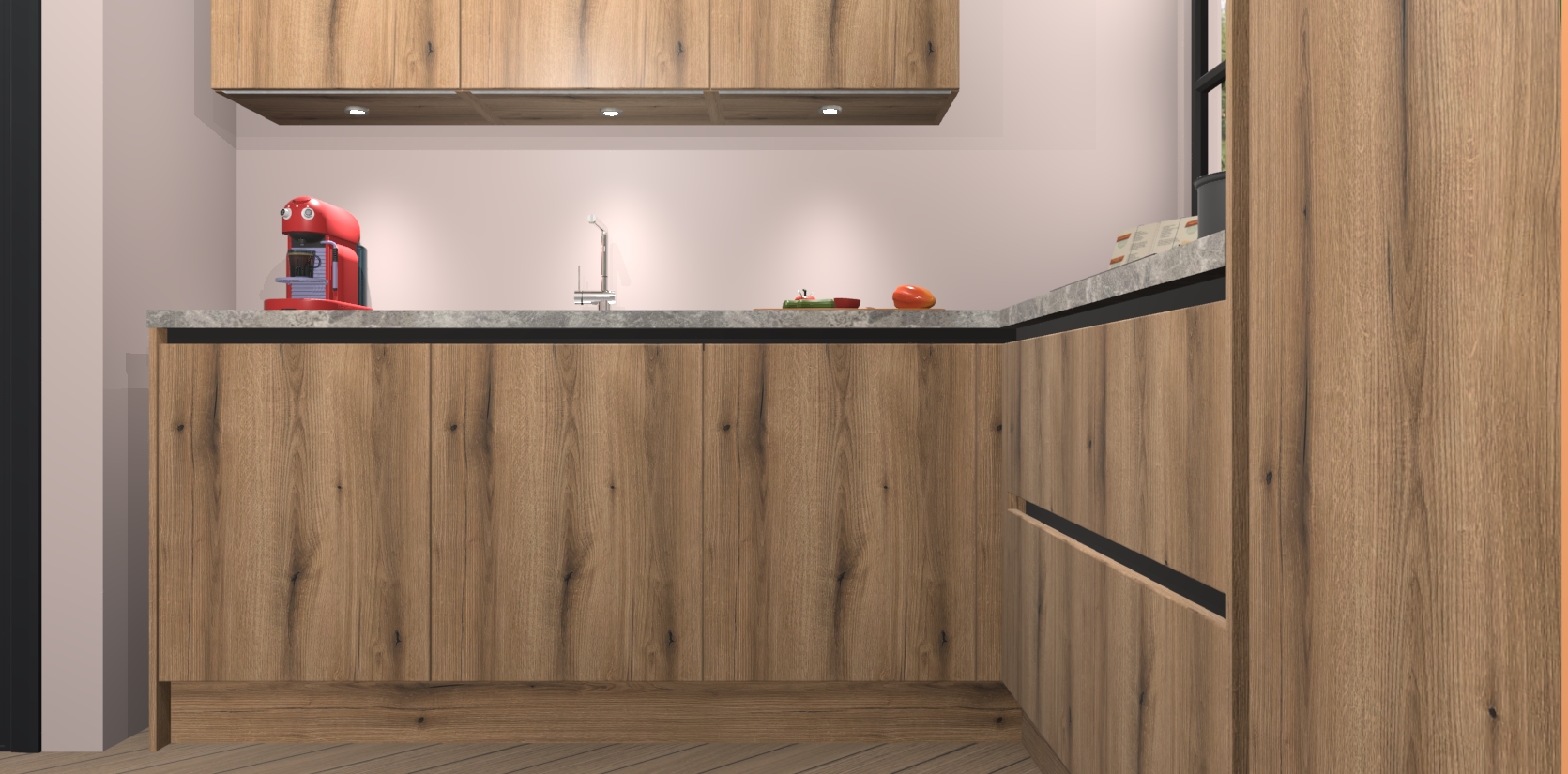 Inclusief plinten, stelpoten en werkblad