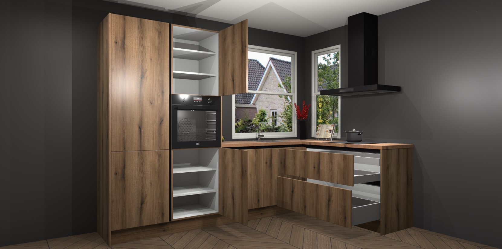 En dat is nog niet alles: u krijgt al dit gemak ook nog eens voor een vaste lage prijs! Bovendien is de levering snel: de Goud Eiken greeploze keuken Kotor wordt al 7 weken na bestelling geleverd! Dat klopt - we leveren ze zelfs voorgemonteerd voor uw gemak. Dus waarom wachten? Haal de Goud Eiken greeploze keuken Kotor vandaag nog in huis - een prachtige hoekkeuken met alle toeters en bellen die uw huis nodig heeft. Wacht niet - handel nu zolang de voorraad strekt!