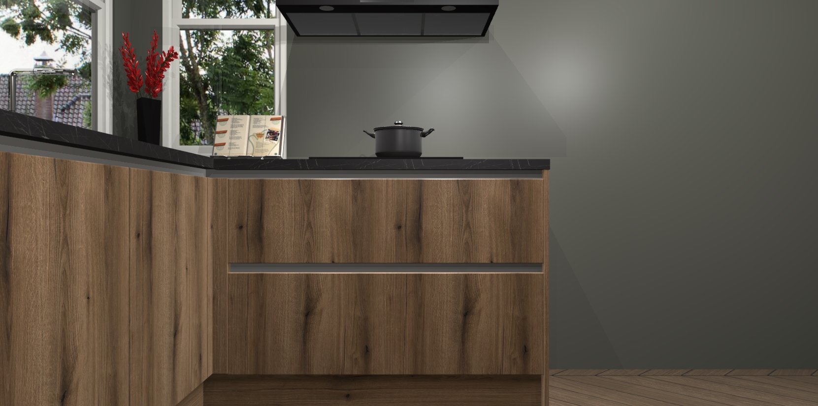 En dat is nog niet alles: u krijgt al dit gemak ook nog eens voor een vaste lage prijs! Bovendien is de levering snel: de Goud Eiken greeploze keuken Kotor wordt al 7 weken na bestelling geleverd! Dat klopt - we leveren ze zelfs voorgemonteerd voor uw gemak. Dus waarom wachten? Haal de Goud Eiken greeploze keuken Kotor vandaag nog in huis - een prachtige hoekkeuken met alle toeters en bellen die uw huis nodig heeft. Wacht niet - handel nu zolang de voorraad strekt!