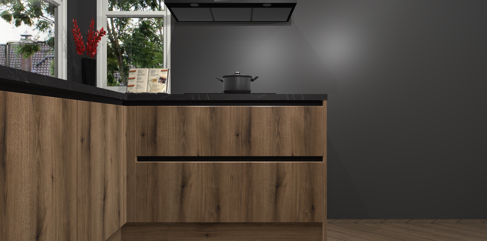 En dat is nog niet alles: u krijgt al dit gemak ook nog eens voor een vaste lage prijs! Bovendien is de levering snel: de Goud Eiken greeploze keuken Kotor wordt al 7 weken na bestelling geleverd! Dat klopt - we leveren ze zelfs voorgemonteerd voor uw gemak. Dus waarom wachten? Haal de Goud Eiken greeploze keuken Kotor vandaag nog in huis - een prachtige hoekkeuken met alle toeters en bellen die uw huis nodig heeft. Wacht niet - handel nu zolang de voorraad strekt!