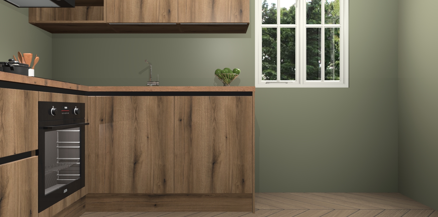Dit model biedt u voldoende opbergruimte en vijf ingebouwde apparaten: een oven, inductiekookplaat, afzuigkap, vaatwasser en koelkast. Deze apparaten kunnen gemakkelijk worden geüpgrade naar AEG nadat u besteld heeft. De verschillende laden en kastjes bevatten softclose-deuren waardoor ze gezellig dichtvallen met een geruststellend helemaal geruisloos geluid. En dat is nog niet alles! We garanderen ook dat de prijs altijd laag blijft - dus haal nu uw Goud Eiken greeploze keuken Krakau terwijl het kan.