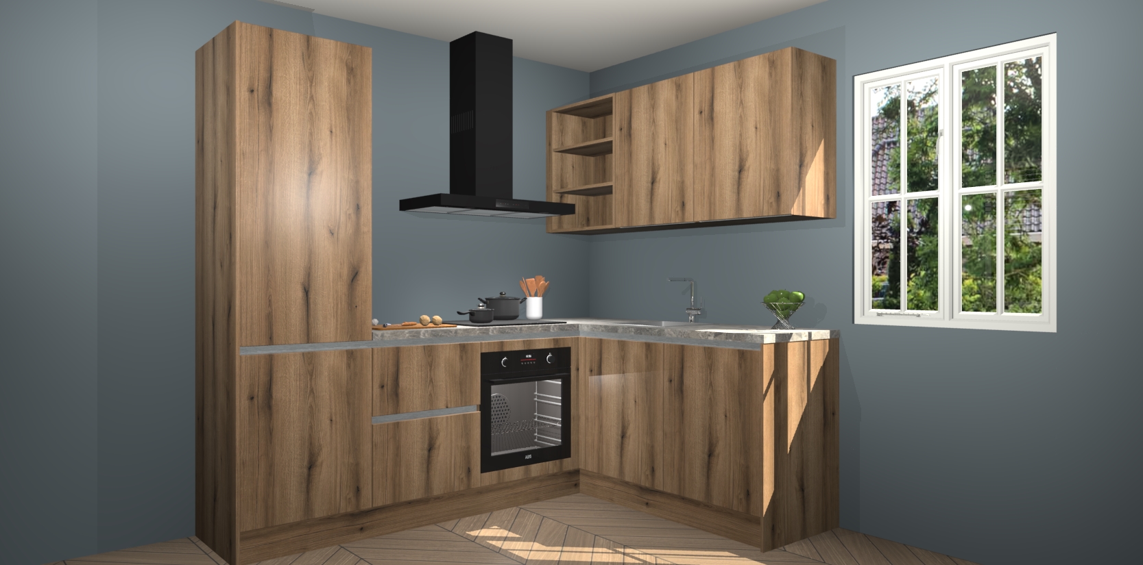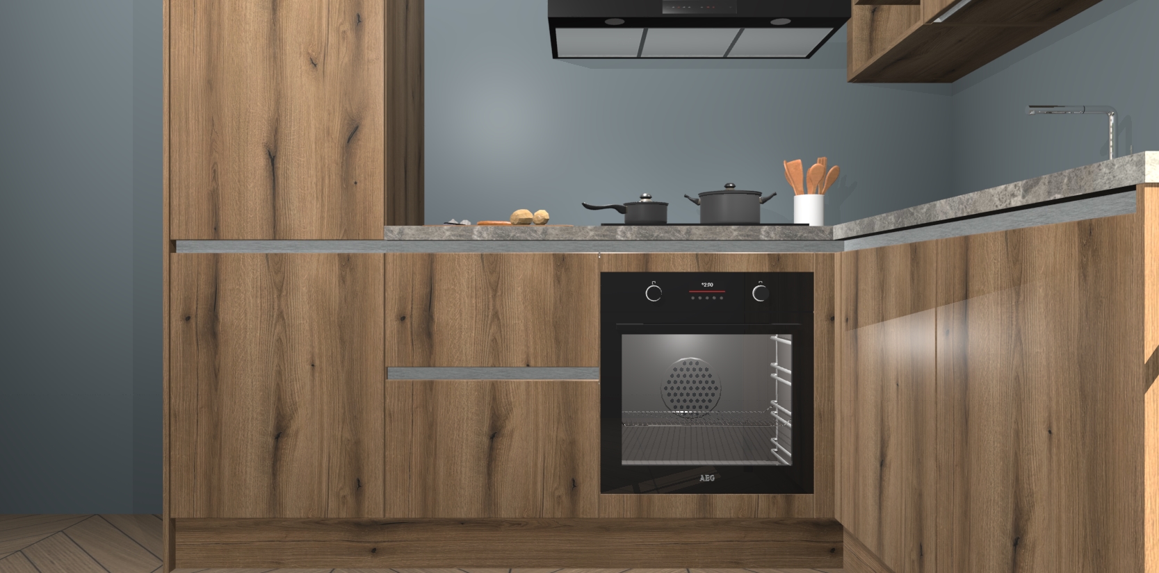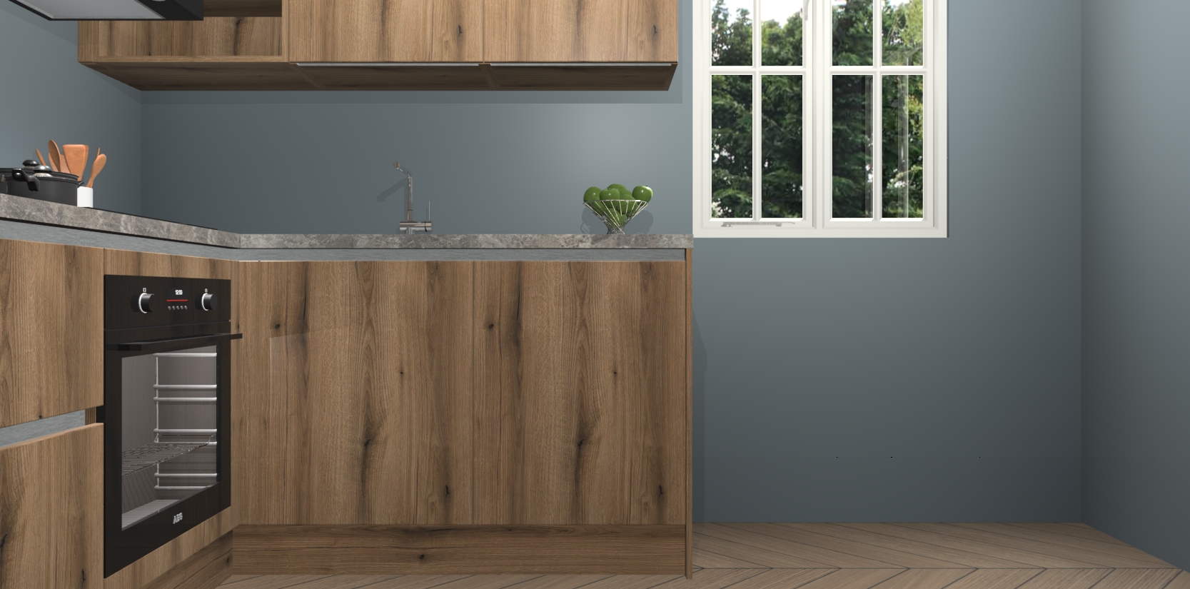Dit model biedt u voldoende opbergruimte en vijf ingebouwde apparaten: een oven, inductiekookplaat, afzuigkap, vaatwasser en koelkast. Deze apparaten kunnen gemakkelijk worden geüpgrade naar AEG nadat u besteld heeft. De verschillende laden en kastjes bevatten softclose-deuren waardoor ze gezellig dichtvallen met een geruststellend helemaal geruisloos geluid. En dat is nog niet alles! We garanderen ook dat de prijs altijd laag blijft - dus haal nu uw Goud Eiken greeploze keuken Krakau terwijl het kan.
