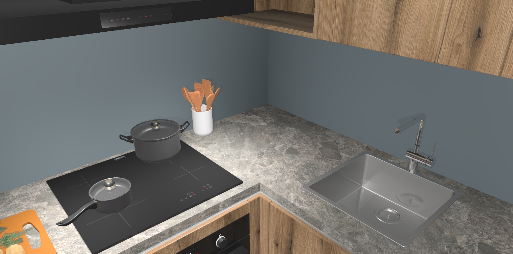 In deze box zijn alle kleuren verzameld van de deuren en werkbladen. Vraag de gratis kleurenbox aan en kijk thuis rustig verder!